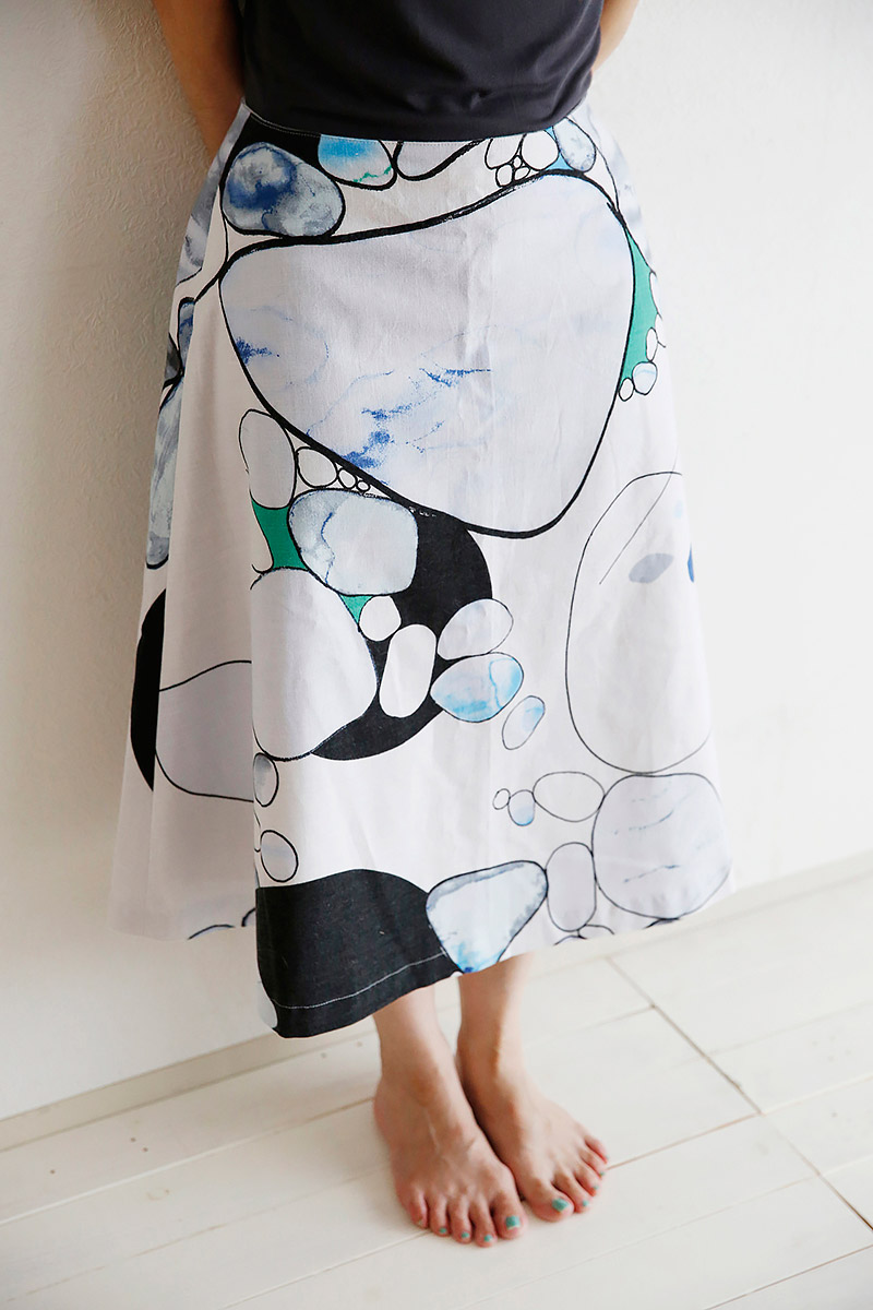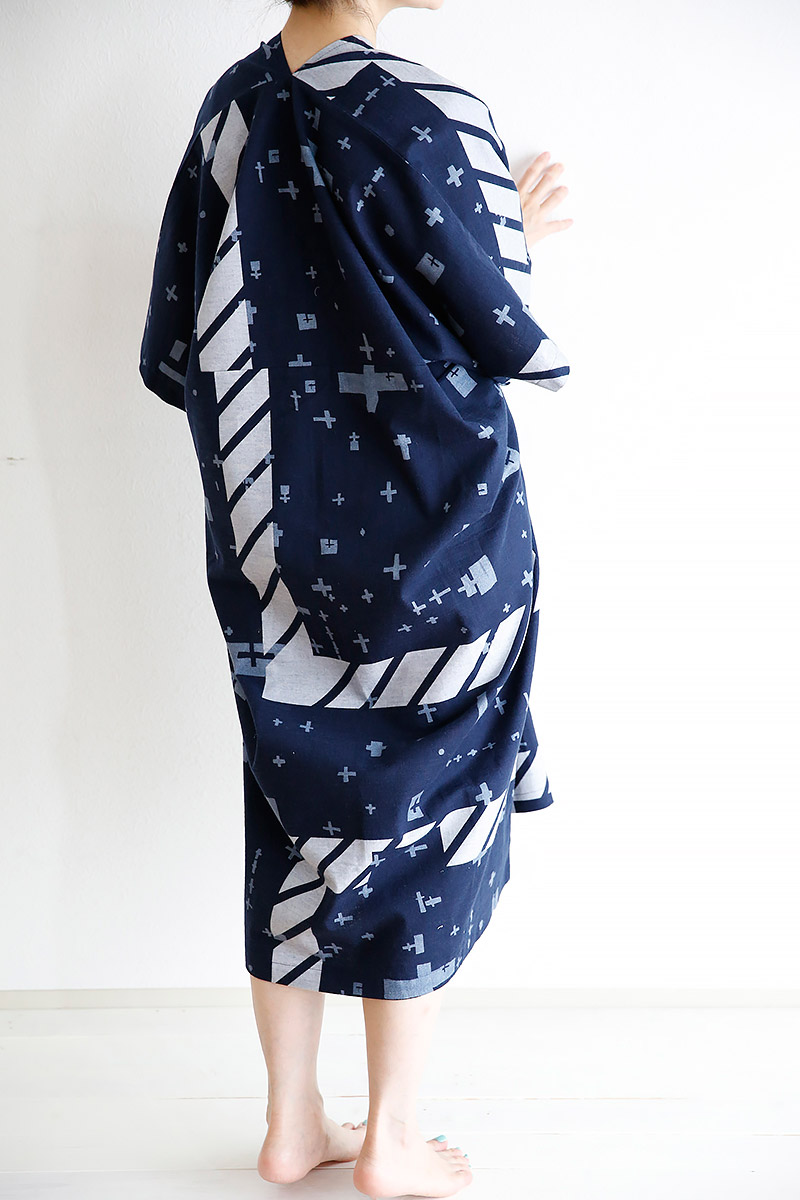 The design inspiration for this fabric is a biker with a bandana on his head. It incorporates a playful element as well. By cutting out along the hatched line, you can make a bandana. While it has a wild image, the sweetness in the details of the geometry adds cuteness. It is a fabric that can be enjoyed by both male and female.