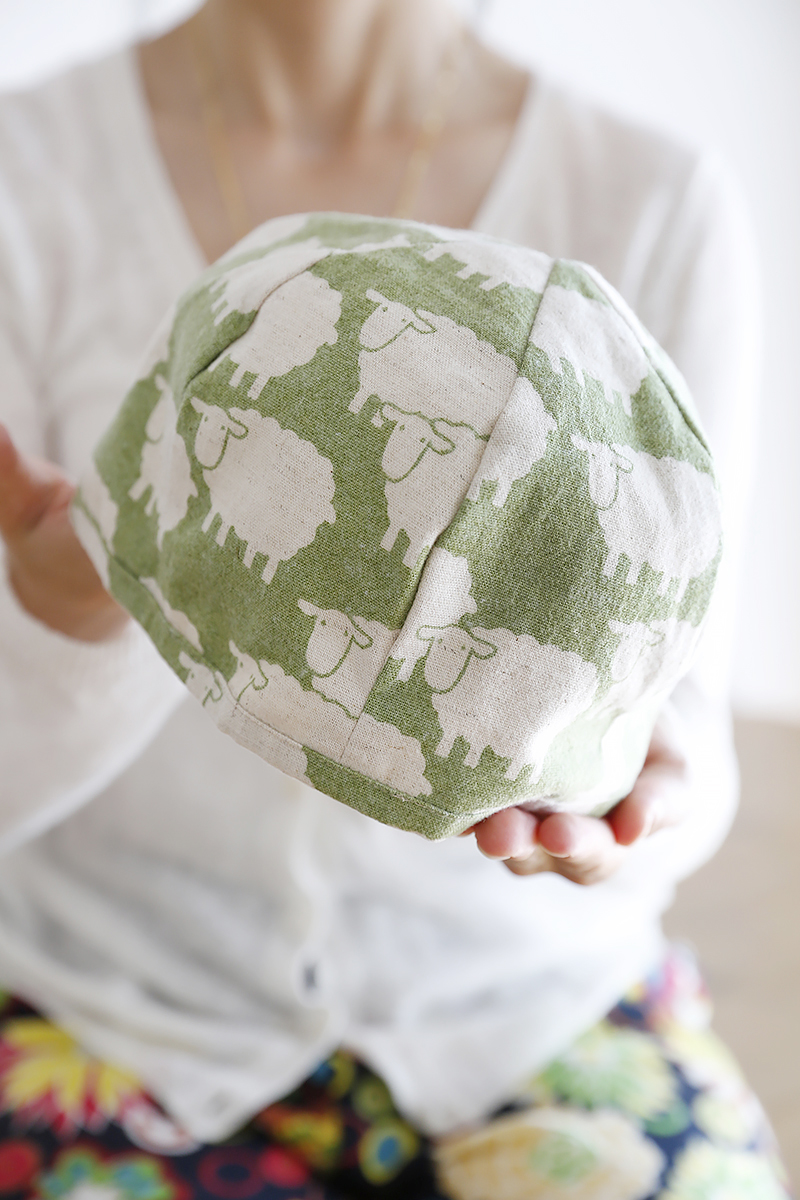 A fluffy looking sheep design spreads over a grandrelle style pattern to create the feel of a wool fabric. It will be cute to make clothes for children with a matching hat.