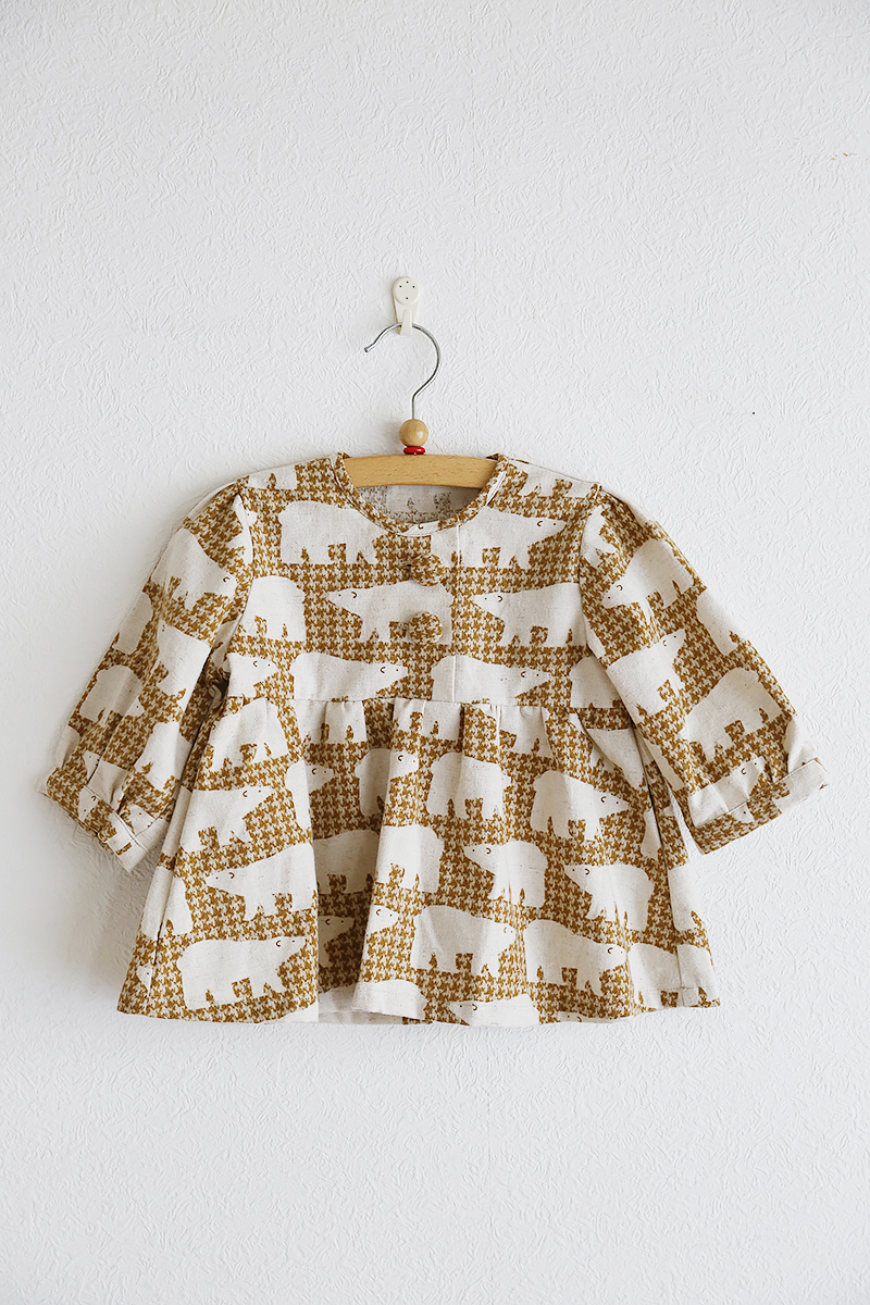 A perfect fabric for a fun fall/winter clothing project, popular animals like sheep, elephants and polar bears line up like stamped motifs. With tweeds and houndstooth check in the woven pattern, this cotton/linen canvas with brushed surface creates a feel of a warm material. Combining with boa, why not creating an extremely cute children’s dress?