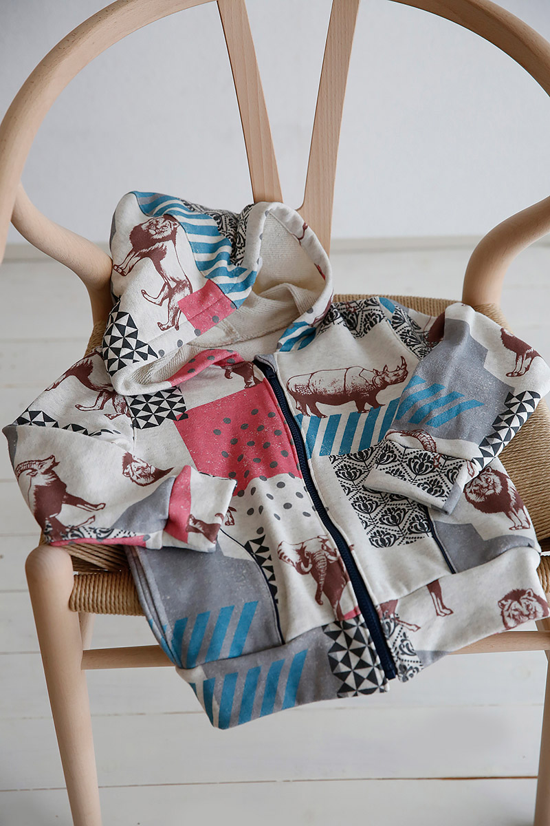 zon features a fun design of animals and geometric patterns. If you want to challenge yourself, making a hoodie might be interesting. This fabric will also make great easy-to-sew throw pillow cases and throws for a couch.