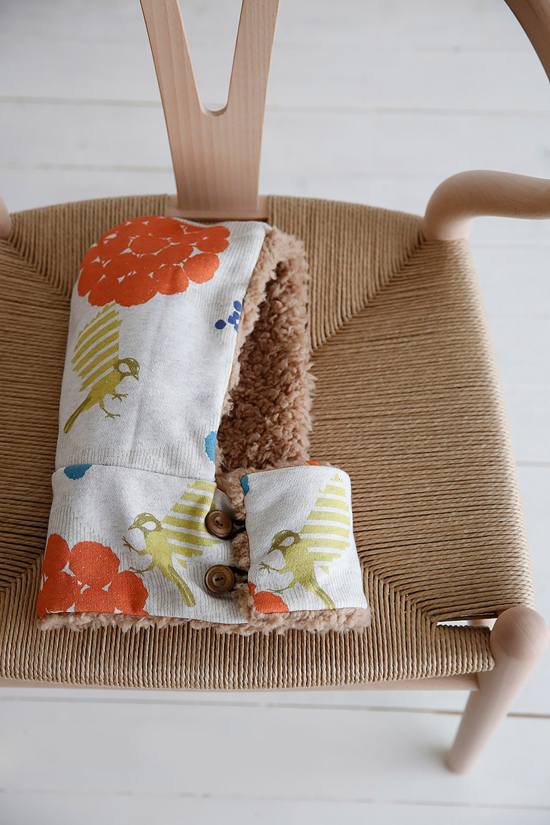 Birds flying in a sea of blooming flowers make up the design of the joy. The layout of the design combined with its cuteness make this fabric very versatile, allowing it to be used for small goods to home décor items.