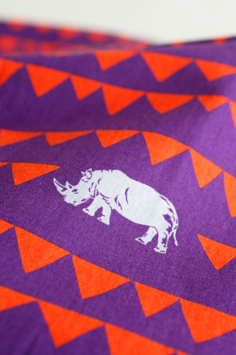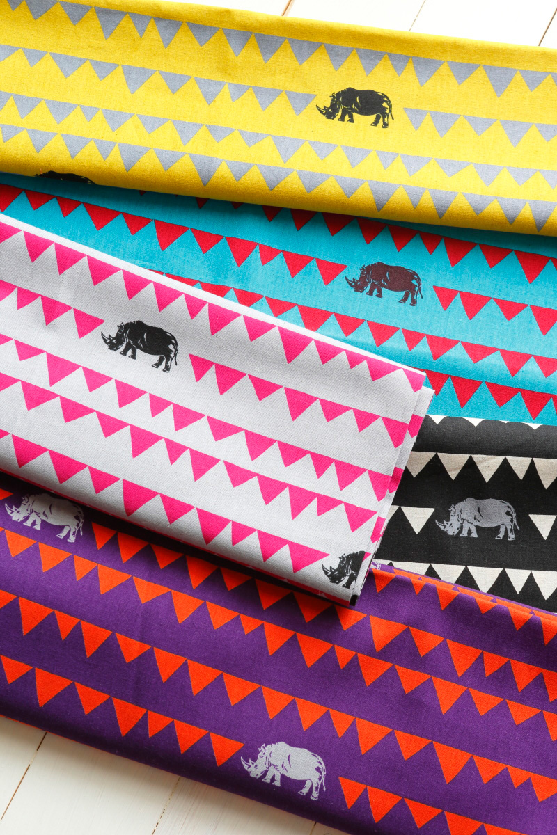 As the name suggests, rhino is the main motif of this fabric. decoro series uses geometric blocks and dots as a common underlying design theme. “I think that the triangle geometric pattern and the rhino silhouette are a perfect imagery combination. While it is simple, I tried to make it look interesting by combining different colors.” Furuya says.