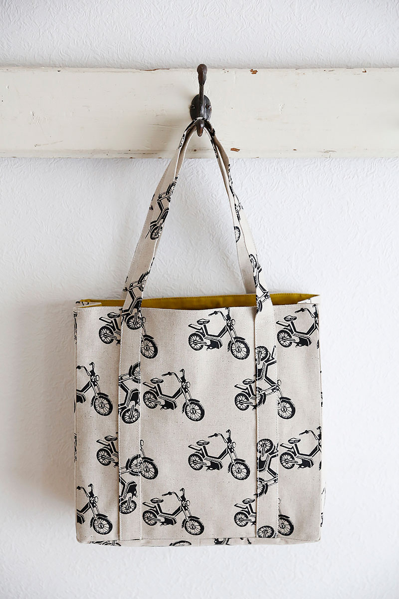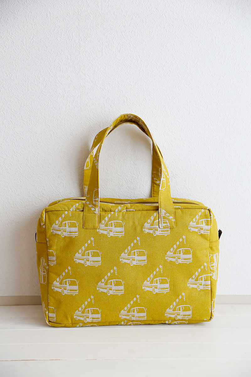 With striped cranes as an accent, cranetruck is an attractive design with a scratchy drawing style on a nicely expressive cotton linen material. Masculine color tones make this fabric perfect for a tote bag.