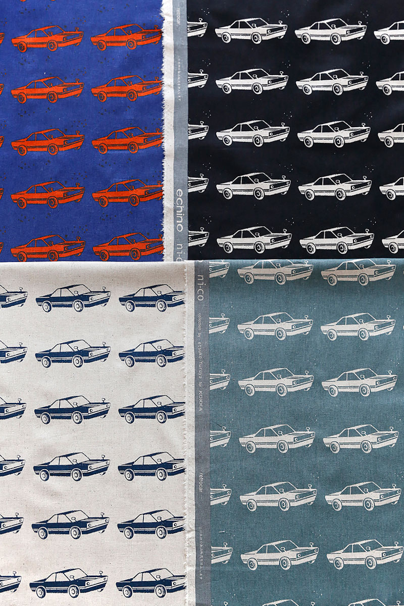 Since its beginning, the automobile is a continuously popular motif for ni-co. The new collection, retrocar, is so versatile with small patterns, it is a perfect fabric for making anything small or large.