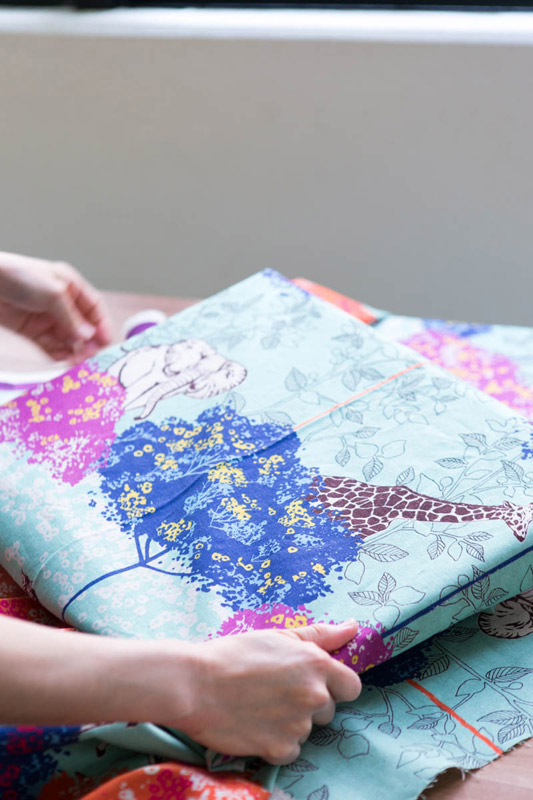 The first featured article in this series is “echino”, the fabric line by textile designer Etsuko Furuya. Since echino came on the textile scene in 2003, Furuya has released a new collection each year. Many of her fabrics are made up of multiple layers of vivid colors which fashioned the name “echino color”. That is the biggest charm of echino! The vibrant and catchy fabrics are great for any projects: clothes, bags or even home décor such as curtains and cushions. echino fabrics are beloved in Japan as well as all over the world.