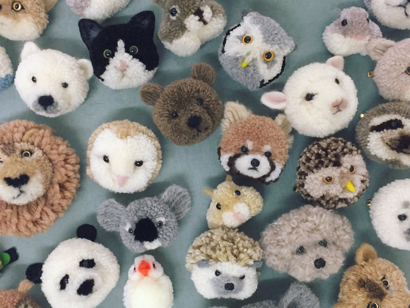 I got a job in Tokyo after graduating from university, but it didn’t last long. After that, I worked as a salesperson at a craft shop in Sendai for five and half years, where I was responsible for teaching workshops and making shop samples. It was a trial knitting lesson at the store when I started creating pom-pom works. I picked the pom-pom making project for the lesson because it was approachable and fun for beginners and children. I made very simple animals such as sheep and rabbits as my first project.