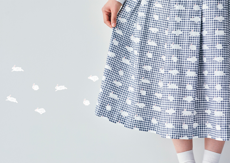 I give little importance to fantasy in my work of textile design. I simply like fantasizing. [Usa Gingham], for example, was created with my fantasy of a cute fabric with rabbits in gingham check background. I also enjoyed naming “Usa Gingham” after “usagi (rabbit)” and “gingham”. As you can see, I design textile with a playful spirit.