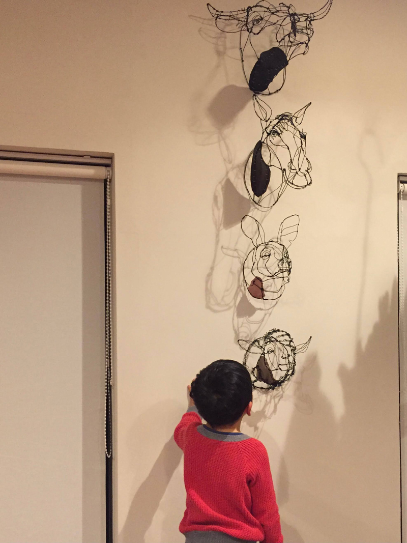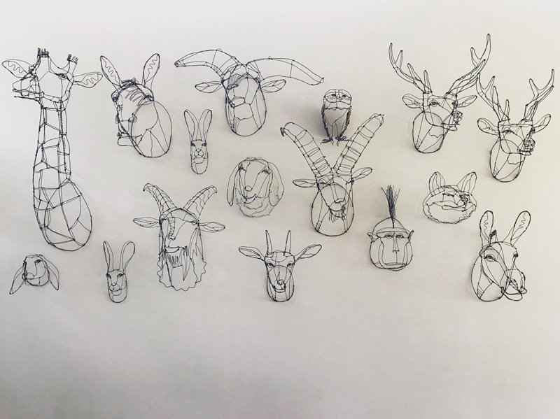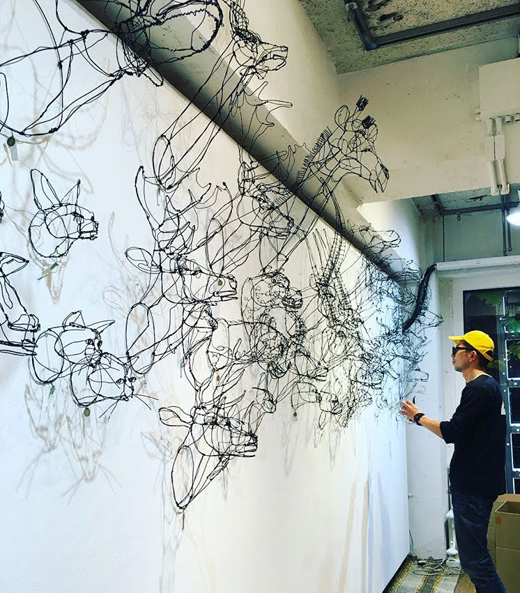 HAyU’s signature is the wire animal head sculpture. I had no intention to change my concept even for textile designs. So, I made a wire sculpture first to design textiles.