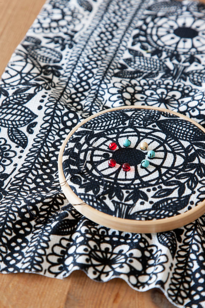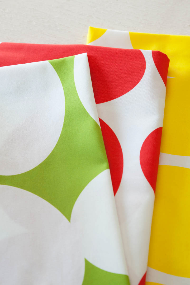 Fabrics from Scandinavian countries tend to have sophisticated designs. Their vivid colors put you in a lively mood and they are very popular for interior décor items. Today’s fabric comes from one of the most prominent and long-established Finnish textile design manufacturers, Finlayson, which has been in business since 1820. The design studio of Finlayson was established in 1951. The print fabric created by their design team is so popular that you will find their fabric literally in every household in Finland. Under the theme “fresh and sophisticated pleasure,” the new collections are introduced twice a year with two design lines, trendy and classic. Kokka is introducing five designs from the new collection. Three designs are featured in today’s column.