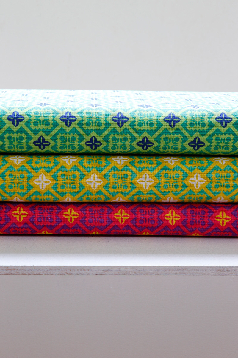 Continued from the previous article in this column, we are covering Ellen Luckett Baker’s newest collection FOLK MODERN. Here are another three prints with more sedate and geometric patterns in the collection. The folk art motifs arranged in contemporary style by her are modern and stylish as its name suggests. You can enjoy these fabrics for bags, home décor, or any project.