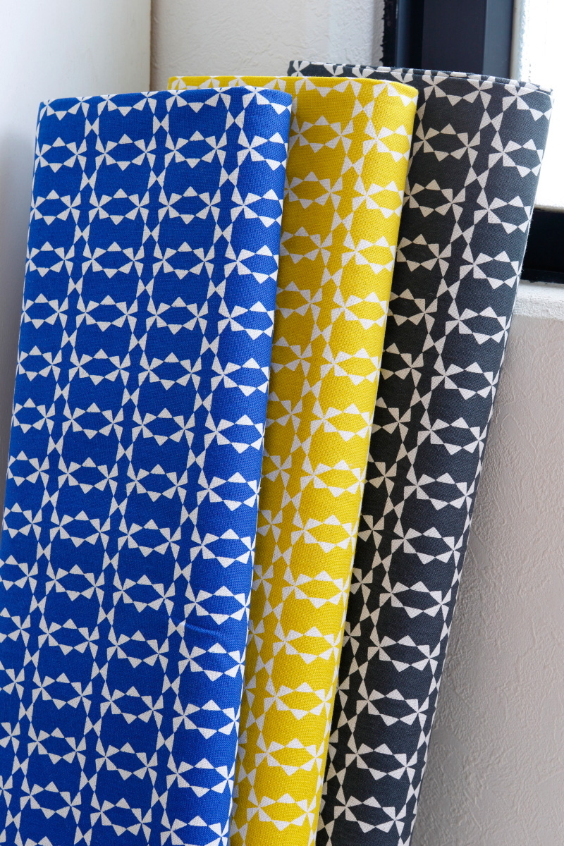 As the Medallions in this collection, this is a great basic that mixes well with anything. The two-tone geometric print stands well on its own. You will also enjoy having the Swedish style by using yellow and blue from this fabric’s color ways.