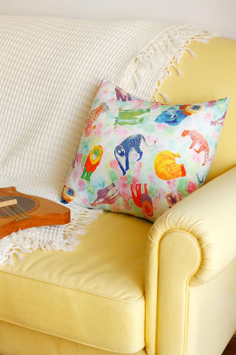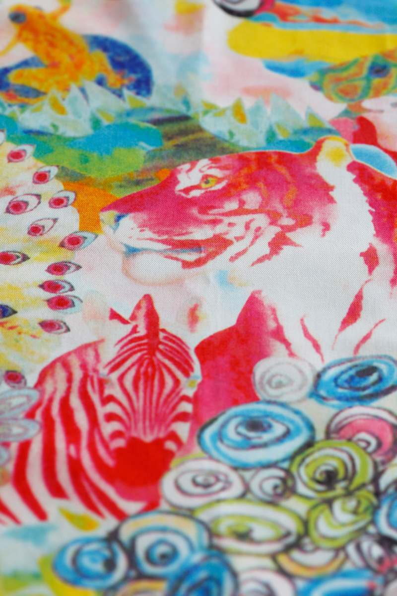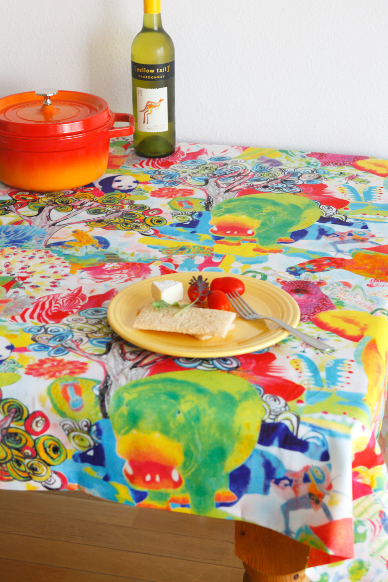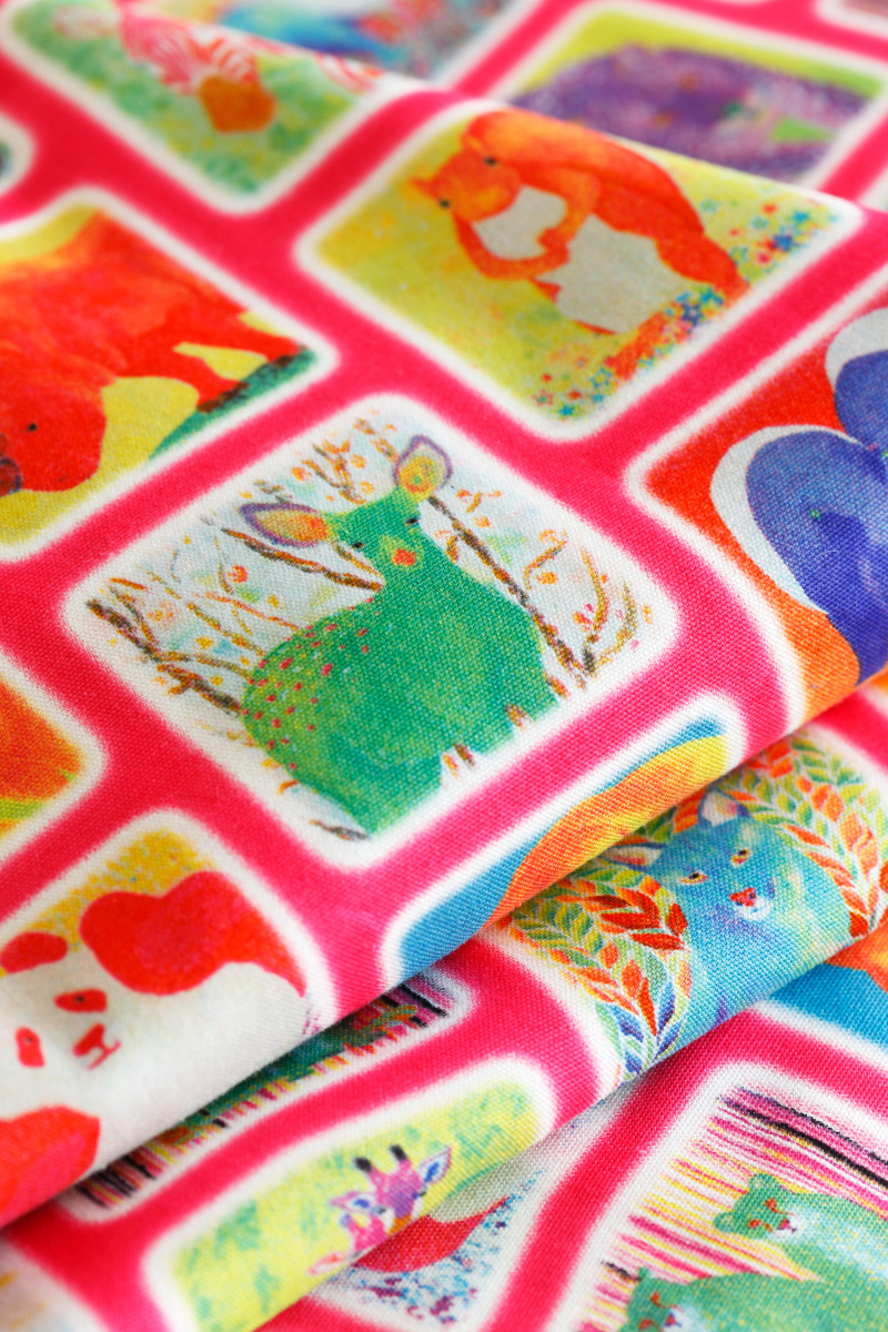 Memories of animals that you encountered in “Wonderland” are placed on the fabric in a film-like manner. Combining different colors is a stylish approach in utilizing this fabric.