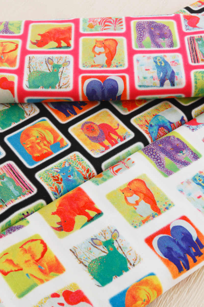 This fabric is overflowing with images of colorful animals. Whether it is pale tones or black, the color scheme completely transforms the feel of this fabric. Cut out your favorite animal motif to create a lovely sachet or charms