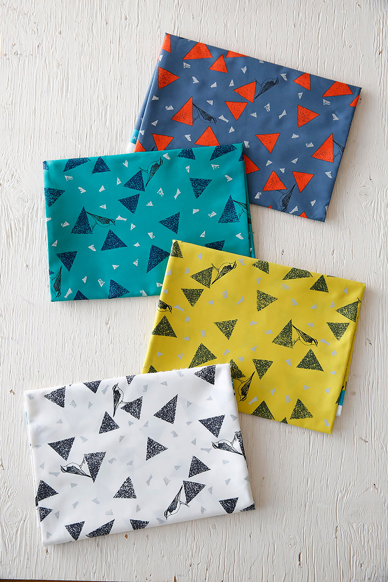 The birds that are looking for triangle and small sparkling pieces are featured. Tiny silver pieces covering the entire fabric reflect beautifully against the soft and silky cotton sateen. Overall design of small motifs make it versatile when you cut any part of the fabric. Perfect for anything from small items to clothing, a simple dress and tunic in this fabric will look stylish.