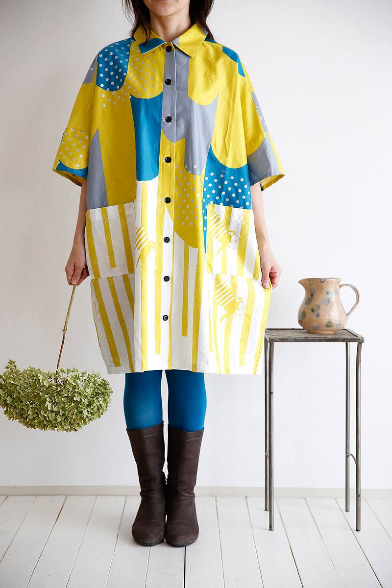 A silky cotton sateen fabric comes in very bright colors, producing a light feel. It is a textile perfect for clothing as well as for bags and small items. The theme for the new collection is “one scene.” Motifs from nature and scenes reminiscent of somewhere you have been before are recreated with patterns in familiar designs. As an accent, silver and gold prints are sporadically featured in all fabrics. Through this treatment, a subtle light overtone can be appreciated.