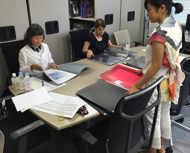 Reiko Sudo (left) and Makiko Minagawa were looking at each single the submission.
