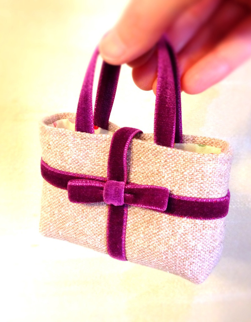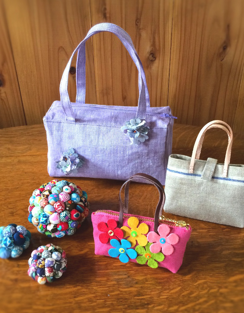 Sawa’s creation theme is ‘simple and kawaii (cute)’. Apart from ‘the tiny bag series’, she creates quite a few other sized bags and accessories. Each creation is made from unique fabrics and materials she is fond of collecting.