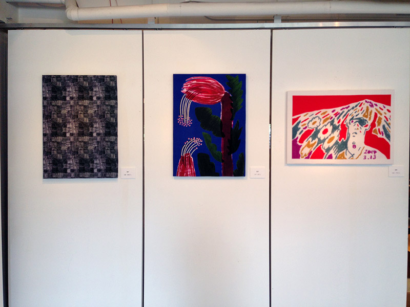 The prize-winning artworks were displayed on a white wall. In the picture below, the first one to the left is the grand prize winning work by Kurara Omichi. The second to the left is by the runner-up, Ako Sakamoto.