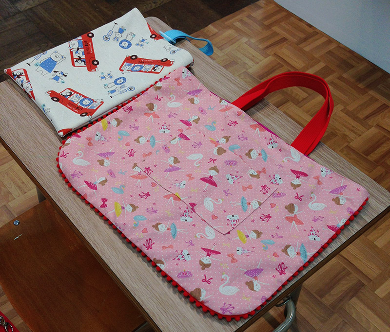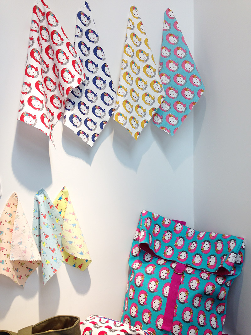 In the picture below a shoe bag and a lesson bag made with Petite Ecole cotton series are displayed. In addition to many perfect fabrics for school items, new prints from Disney and Hello Kitty were presented at the trade show. Hopefully you will meet them soon at your local fabric store.