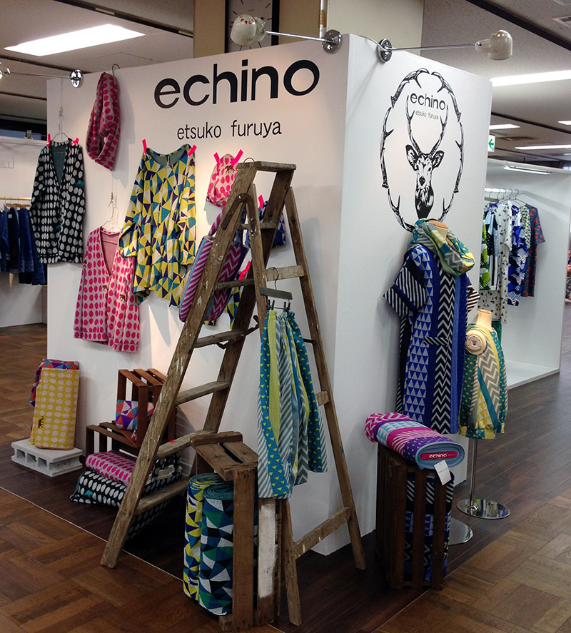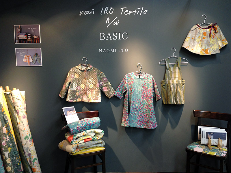 One of nani IRO basics “Fuwari fuwari”, which is paint-like and reminiscent of pointillism, is now available in brushed cotton! A girl’s dress made with the new fabric and a jacket of fluffy pre-quilted “Fuccra:rakuen” fabric were displayed next to each other in the trade show venue. Although each was made with different textures, they nicely harmonized to create a warm and comfy feel. This is naniIRO magic! No wonder why this textile brand is always attractive.