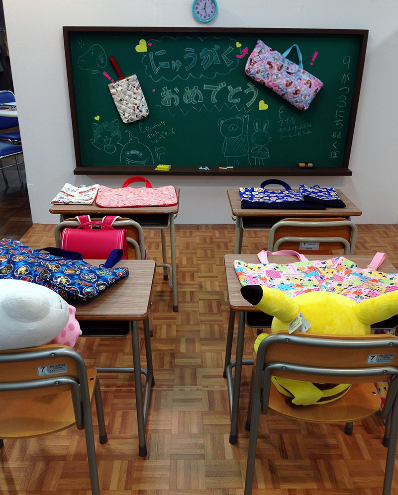 Every year, Kokka’s September show features a wide variety of fabrics to create items in preparation for the new school year in Japan. This year, the imitation of an elementary school classroom was set up in the venue. As if it had been a theatrical play for children, the classroom scene was truly recreated with popular fictional characters as students. Kids would have loved it!