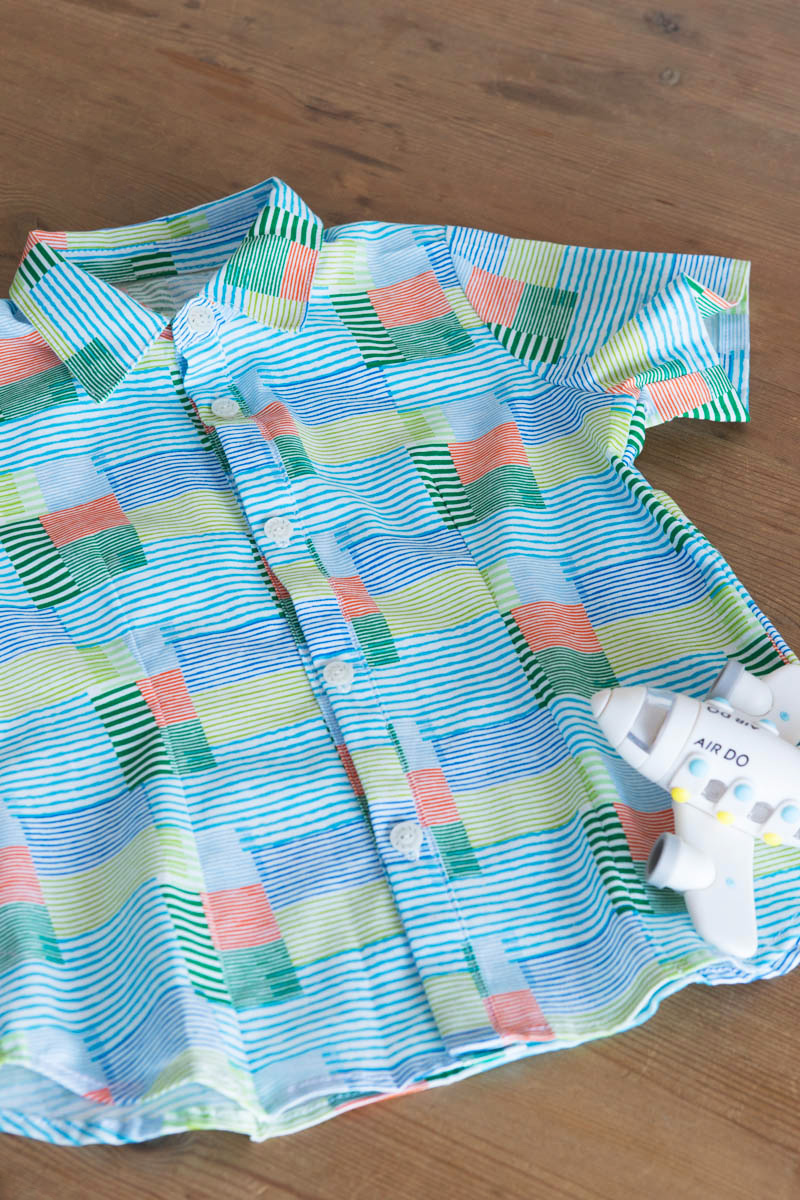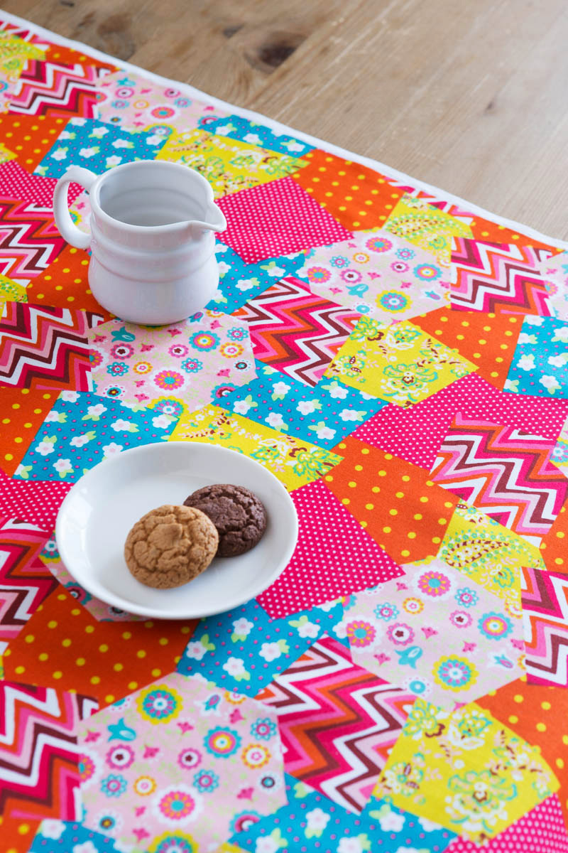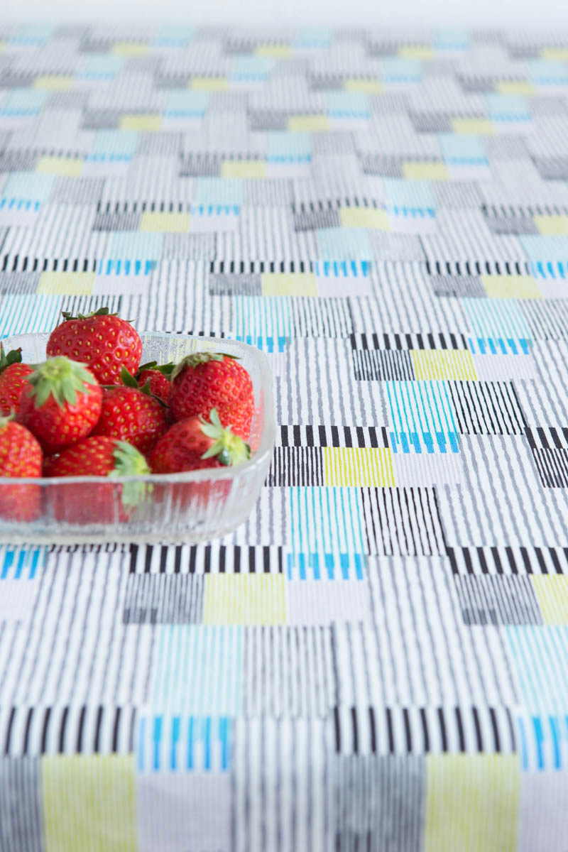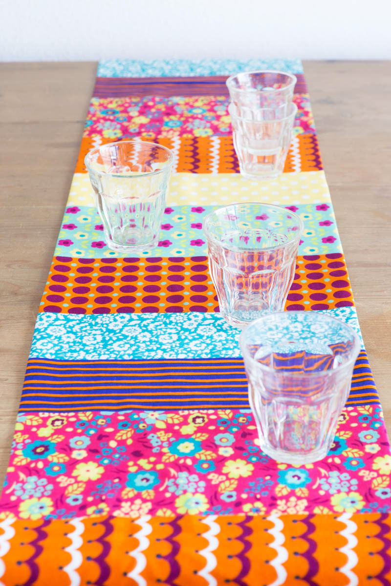 Borders with different widths are combined to create a patchworked-look. To make it versatile for men’s use, the tone is colorful yet the design is simple. Matching items for dad and son would make it a fun project.