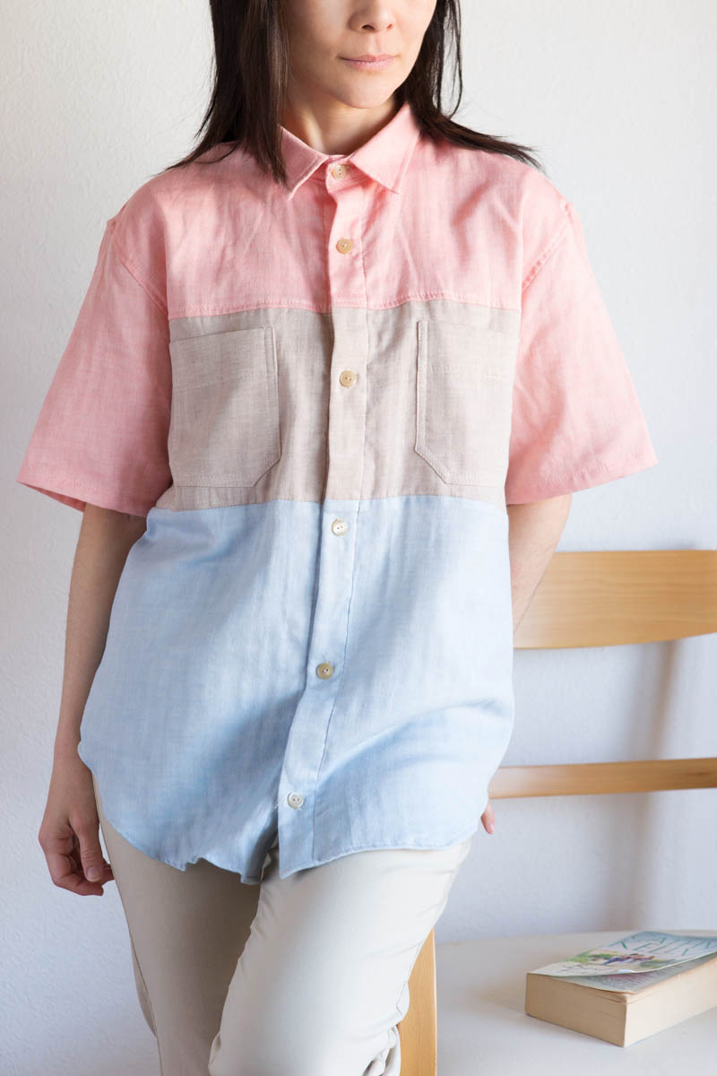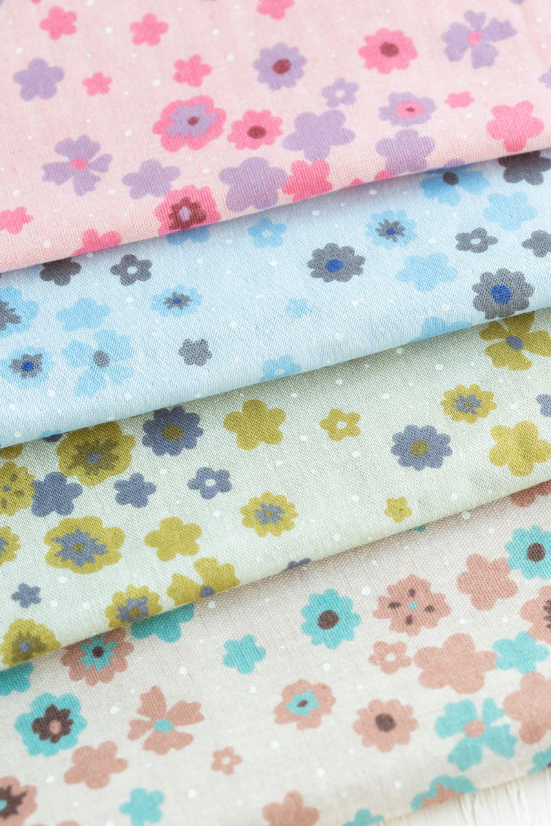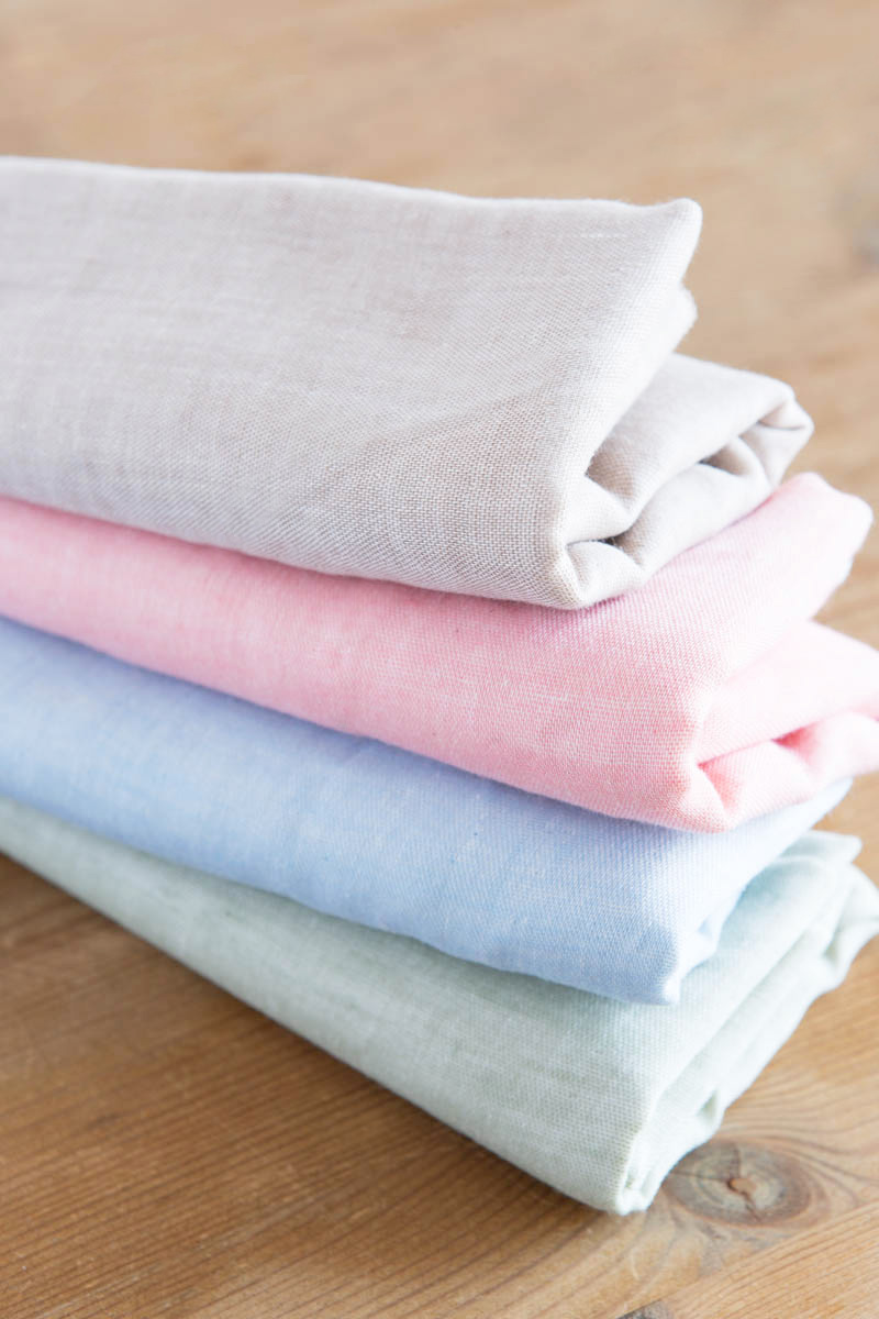 The Joielinne series of fabric is here again. With a variety of materials, this is a fabric that can be enjoyed by everyone in the family. Today we are featuring a yarn-dyed chambray double gauze fabric. Gauze is perfect for garments as it becomes softer and softer as you use it. With same base colors, these four different designs can be enjoyed by combining and pairing pieces together.