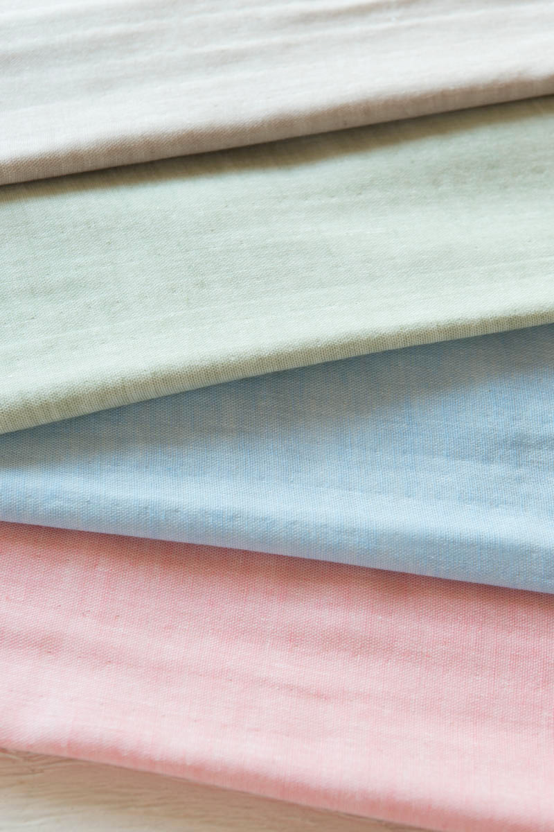 A solid color fabric that can be used to enjoy various combinations. As the pictures show, a simple paring of different solid colors creates a soft feel.