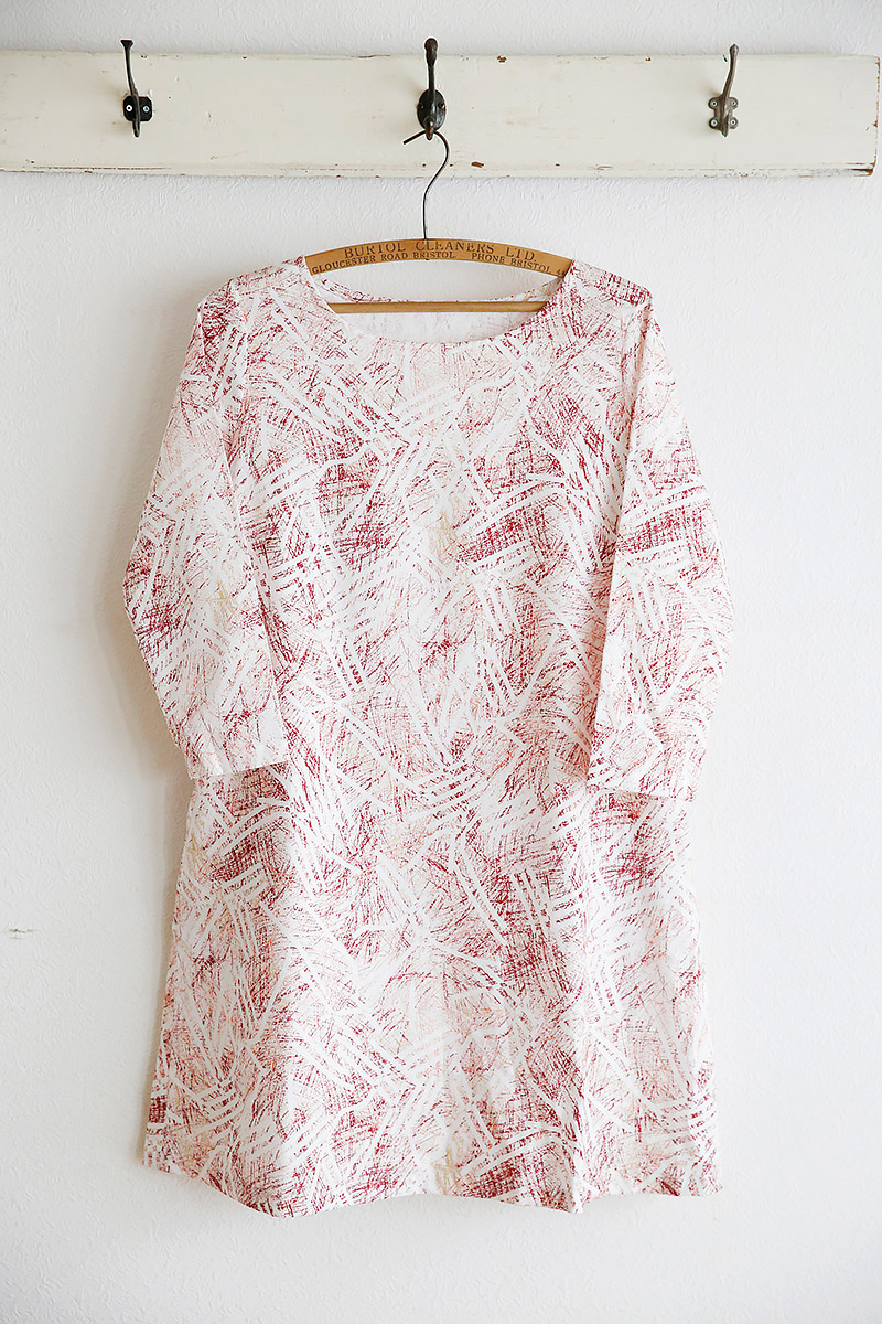 Above layers and layers of thin lines lie white lines in a rhythmical manner like flowing clouds. This easy-to-handle fabric with delicate patterns is ideal for clothes making.