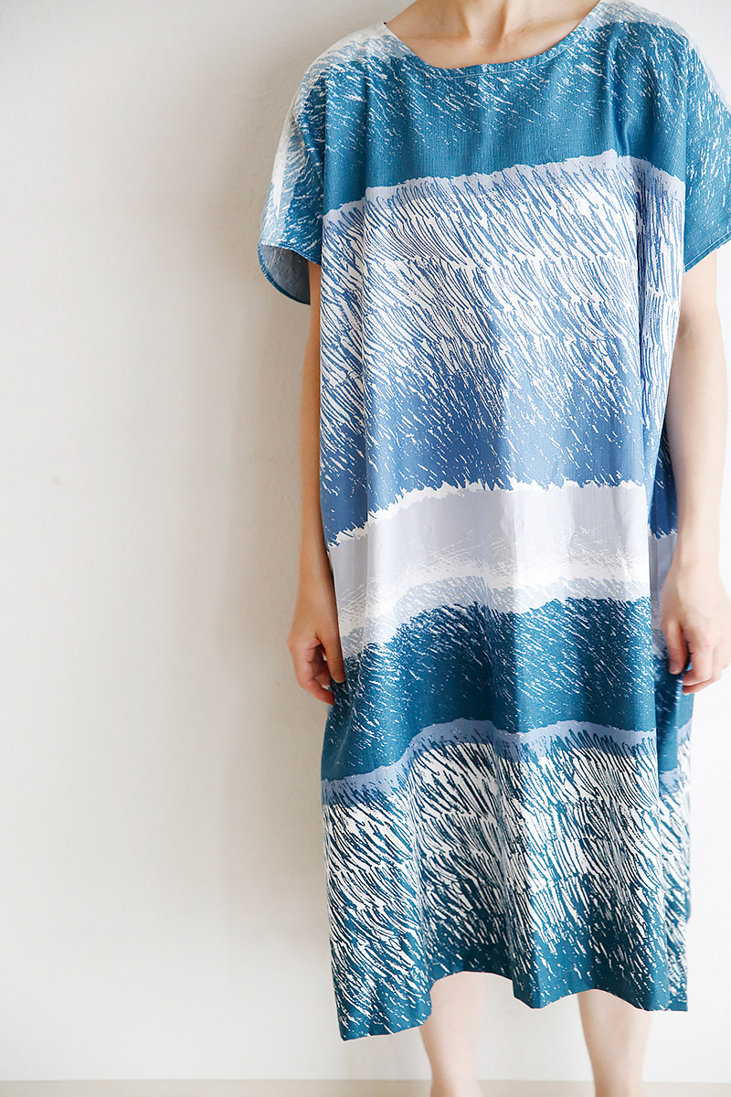 Great reaches of mountains combined with a cloudless clear sky over the peaks is one of the favorite sceneries that can be enjoyed from the designer’s house. A bold stripe maximized by a rhythmical touches of crayon drawing is versatile and it can be used both horizontally or vertically. This medium-thickness rough cotton linen fabric is perfect for a variety of projects including clothing, bags and interior décor items.