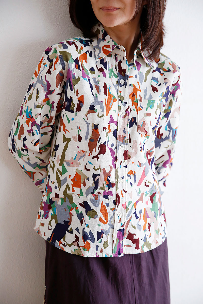 The new brand by Kurara Omichi, the top winner of the 4th Kokka Print Textile Competition is finally making its debut! With her avant-garde design and distinct use of colors, Omichi represents a new style of textile. HaaT of ISSEY MIYAKE INC spotted and adopted the unconventional textile for their spring/summer collection. The brand’s name, Koto Thouin comes from the Japanese word of Kotohamu, which means “let’s ask, let’s inquire.” When designing, she gets the inspiration from questioning stares that are cast from the stains, scars and shadows of the things.
