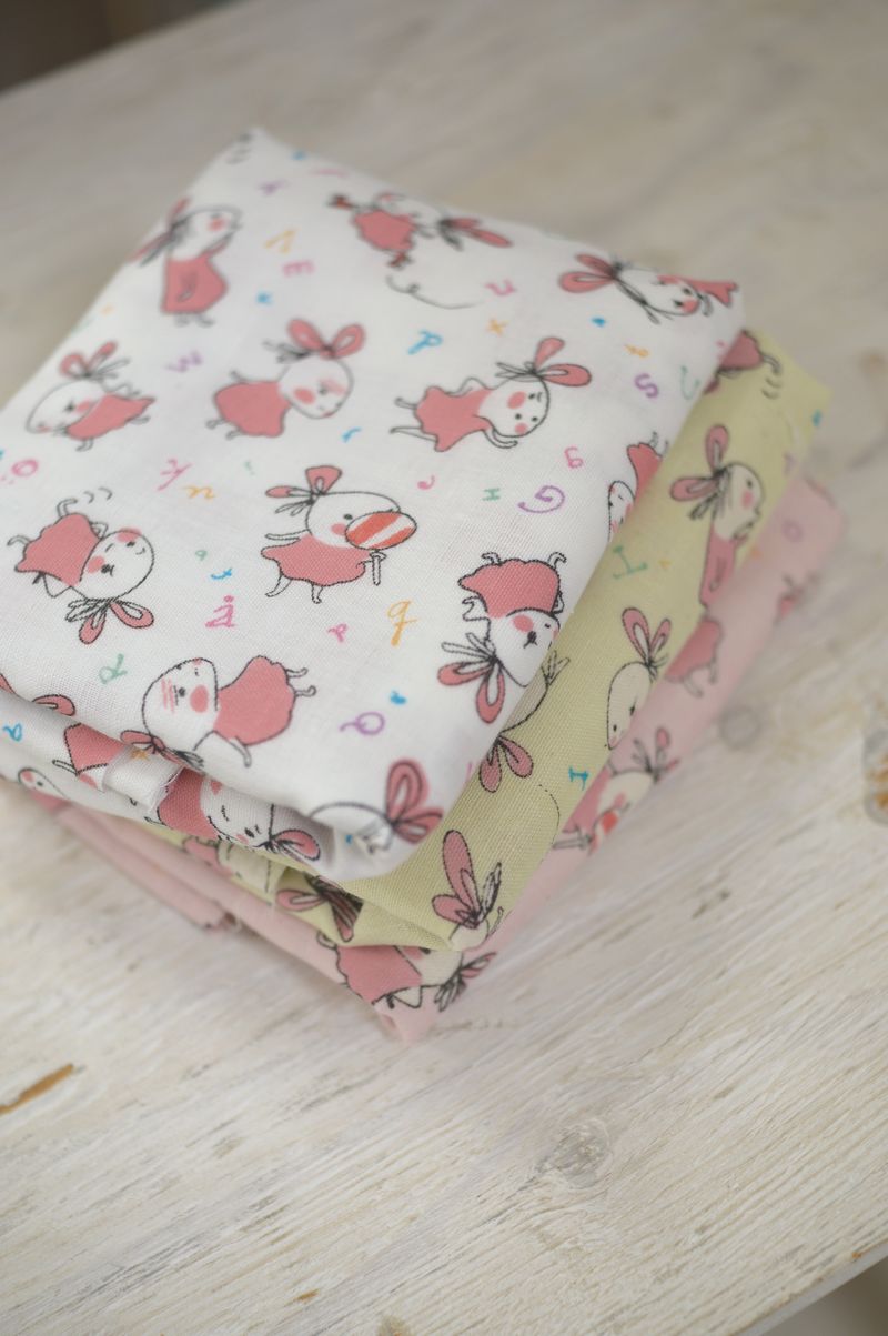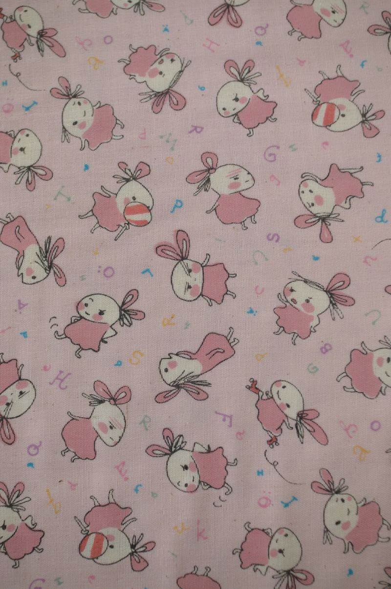 The Little Pink of various postures and expressions is printed all over the fabric. There are 3 colorways but keeping the pink color of the character.