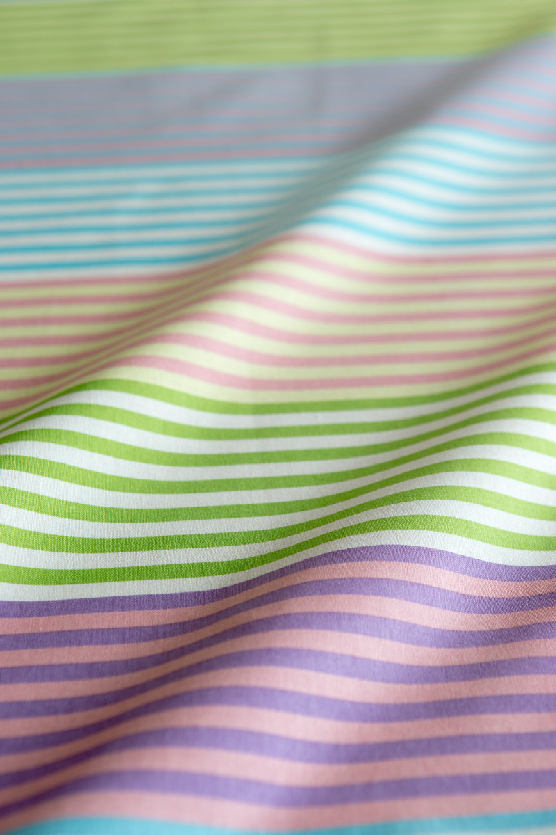 Only the color combinations change the image of the fabrics. There are 4 colorways including the cute pastel and the sharp stripes. Choose what suits your project.