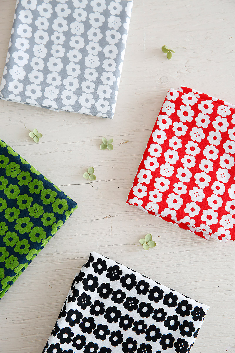 Flower motifs like a paper cutout are aligned in the same interval. It can simply be used by itself or when combined with other designs, this fabric will add a sharp accent.