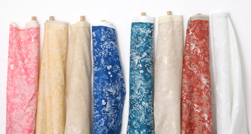 Started in 2002, naniIRO textile is a brand that incorporates Naomi Ito’s water color painting into fabrics. The brand’s name nani means beautiful in Hawaiian and IRO represents the meaning of color and harmony. A poetic gradation and bright coloration that take in the shades of light and water, gradual line and beautiful composition as a main piece…these elements turned the fabric into a painting and made this brand a Japanese pioneer of print fabrics featuring an artist. In the last 15 years of its history, 127 designs with 699 colors were created.