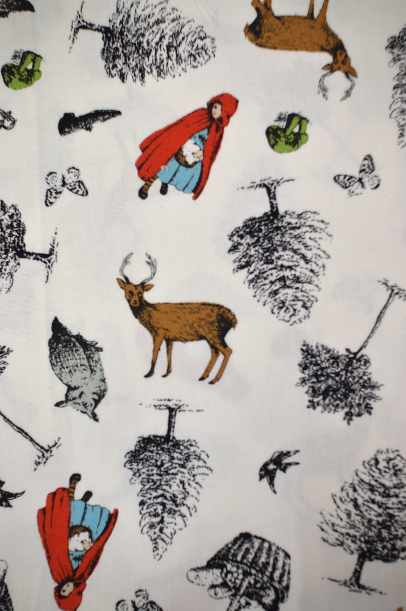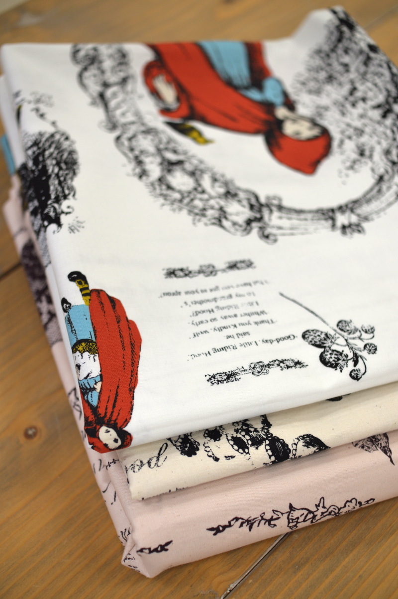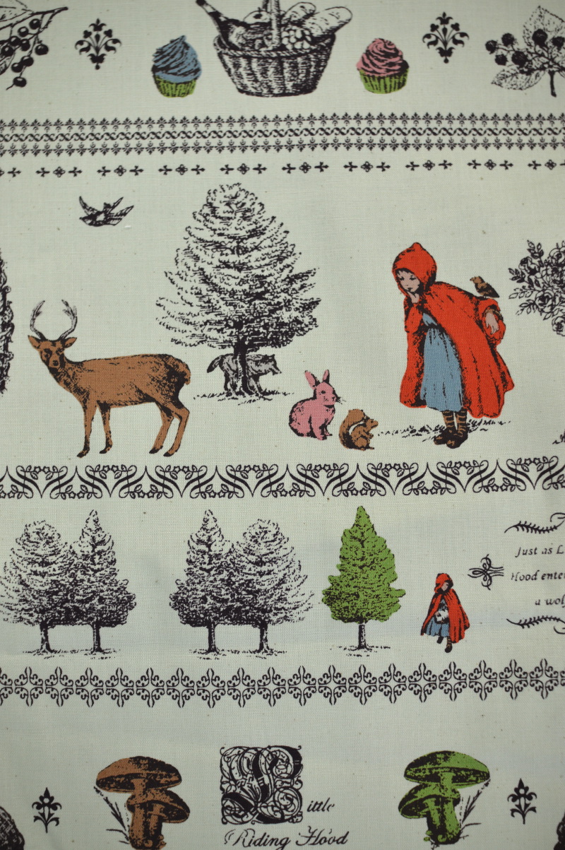 A perfect fabric for making small goods and kid’s clothing. Riding-Hood patterns appear all over the fabric. With a small design sequence, Riding-Hood is in every little section of the fabric.