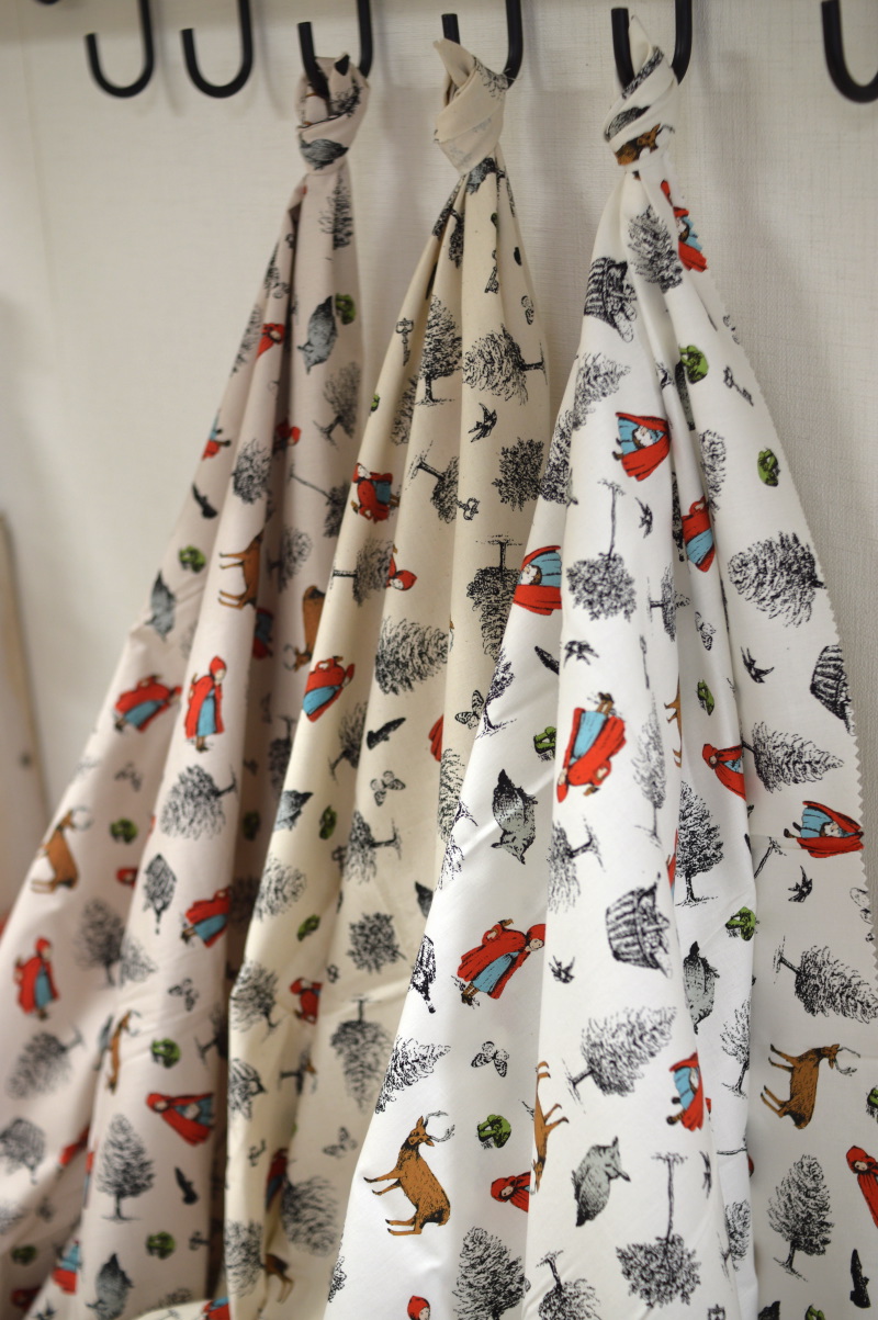Once again, we are happy to introduce a story on nunokara, a series of KOKKA original fabrics. Its inspiration comes from the world of fairy tales with different artistic styles. For today’s article, we selected Rotkappachen (Little Red Riding-Hood). Yes, it’s the story where grandma gets eaten by a big bad wolf! The popular story for children is recreated with an etched-style graphic for grown-up tastes.