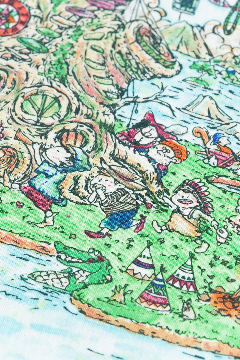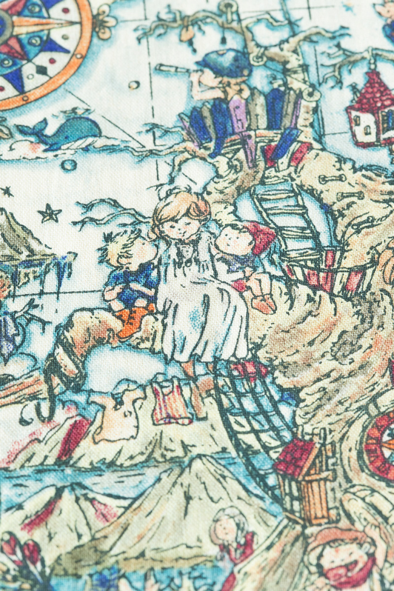 “This design was done with the inclination to squeeze my favorite story, Peter Pan, into a piece of fabric. Whether you are familiar with the story or not, I hope everyone will end up having a similar story of Neverland through this fabric.” (Shiomi)