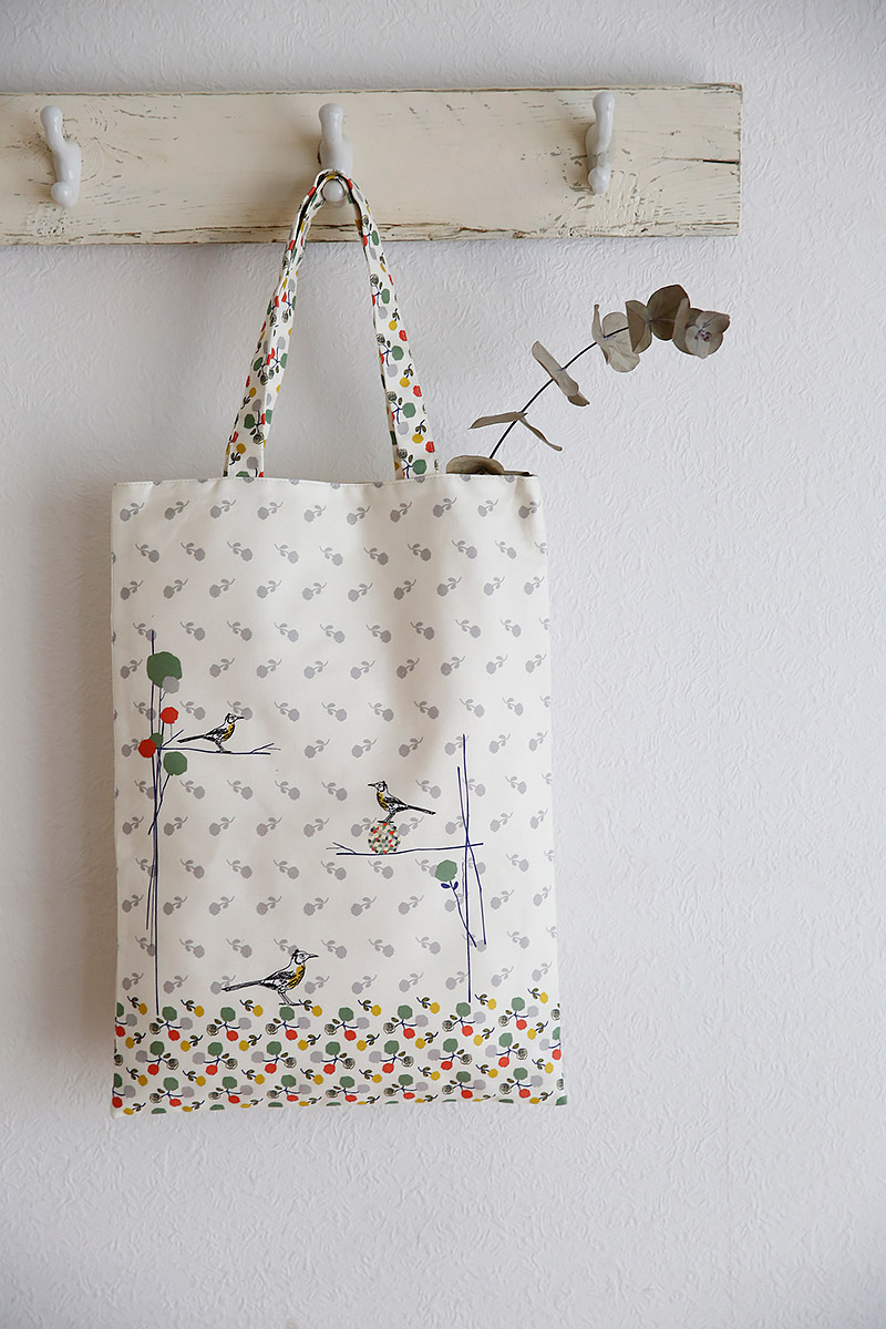 This is a linen cotton mix canvas fabric. I can see it being made into cushions, window blinds and curtains for a quirky finish to the home. I think it would be perfect for making tote bags. The weight of the fabric will lend itself to more structured clothing such as jackets and pleated dresses and skirts.