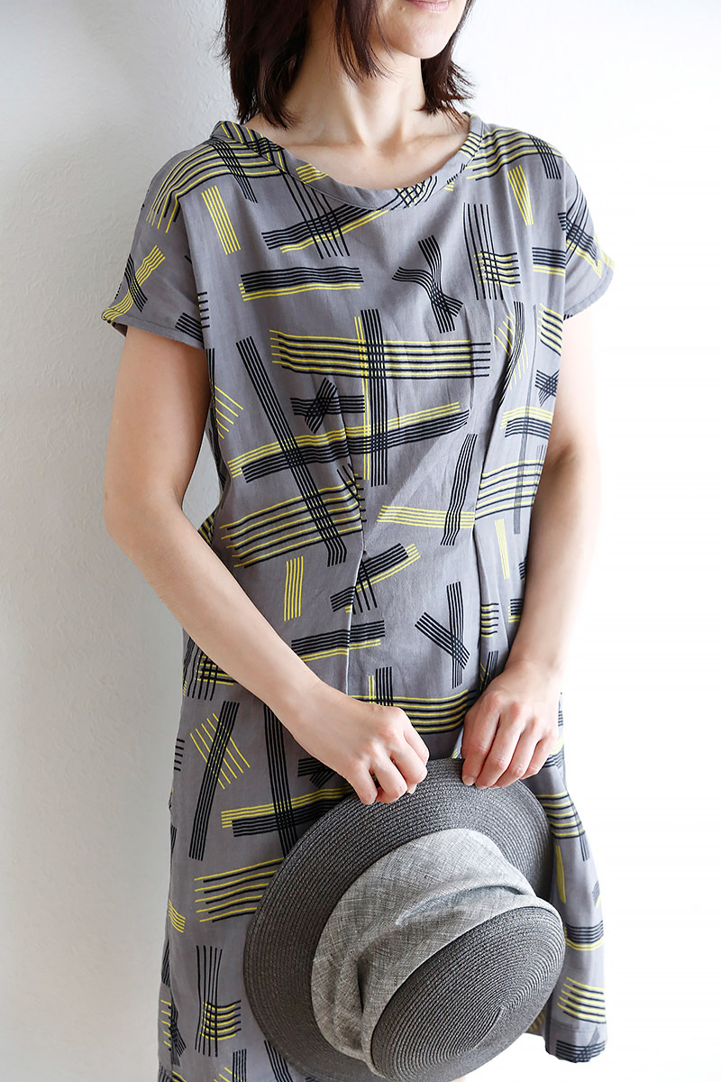 The motif for this design is intersections. Compared to the lovely small print hashtags, this design looks sharp and stylish. Randomly placed large and small lines create a great contrast against a subdued background. A one-piece dress in this fabric will be quite fashionable!