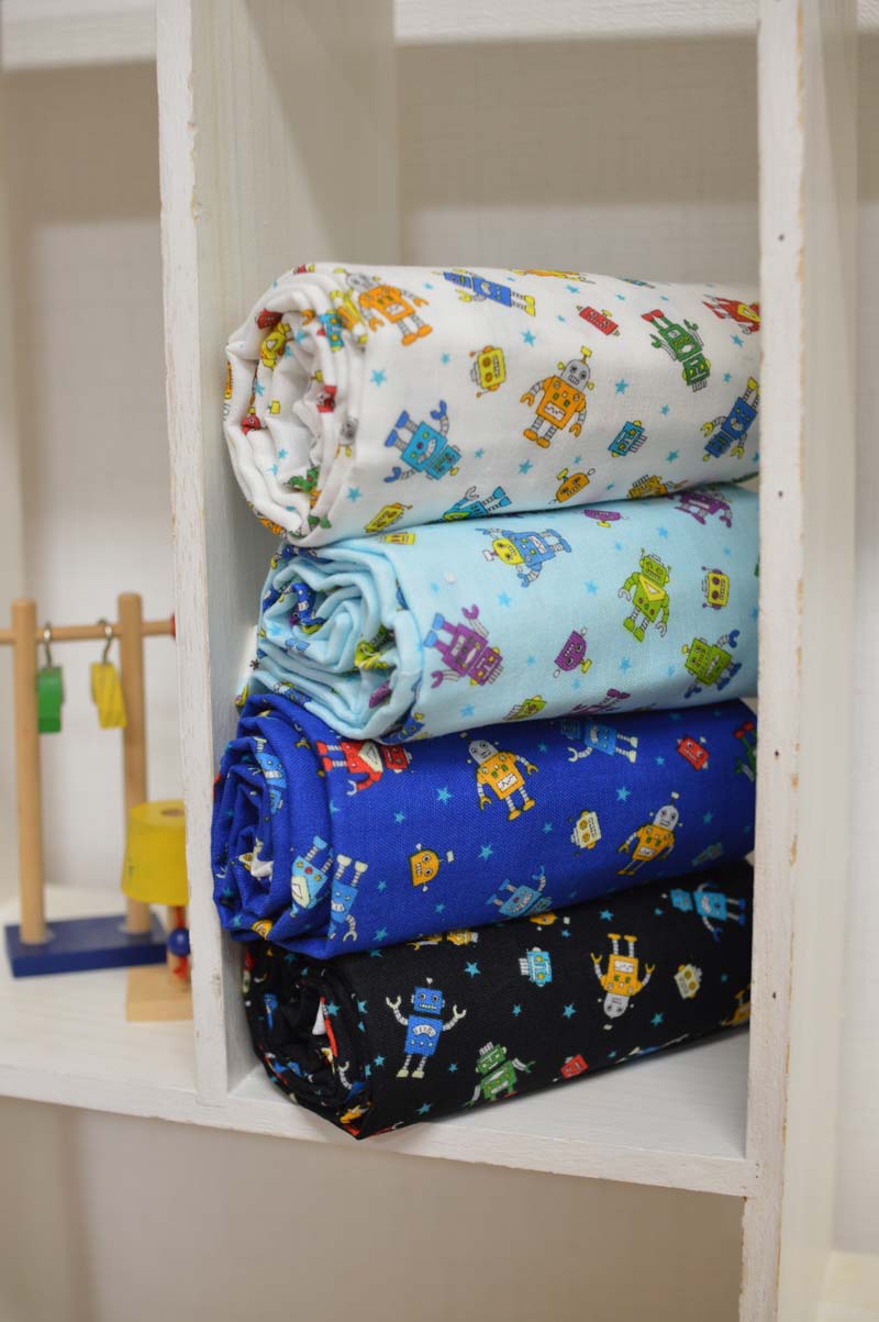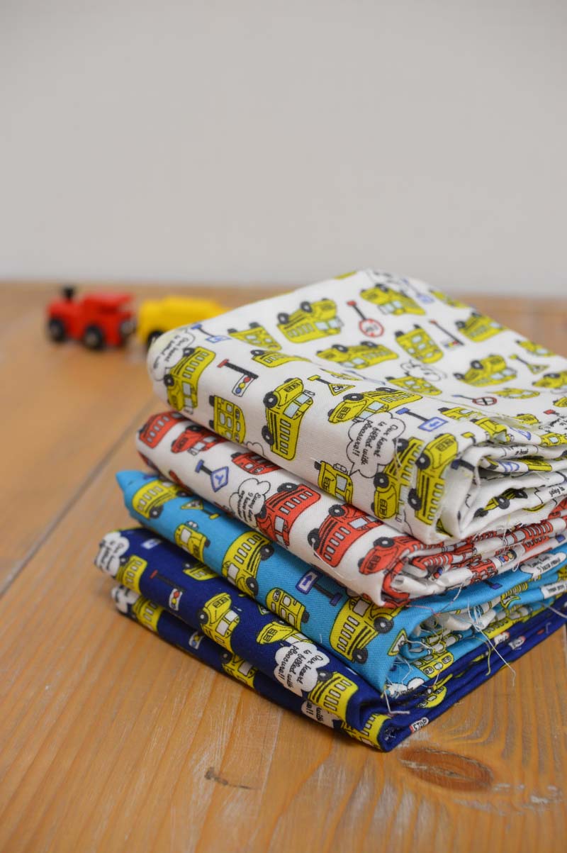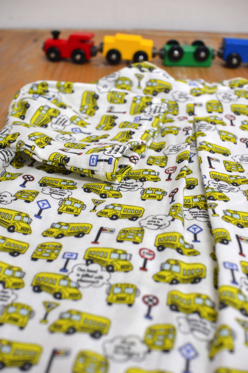 Soft double gauze has high absorbency and its airy texture is perfect for making children’s clothing. On today’s fabric, petit trèfle, a small single motif appears repeatedly. As the design spreads throughout the fabric, you can use any part of it without worrying about matching the patterns of the cut pieces. The ones with robots and busses are great for boys shirts, while the cupcake design and elephant print are recommended for making girls dresses. The gauze fabric has perfect qualities for making masks. With many color variations, you will have fun wearing different choices.