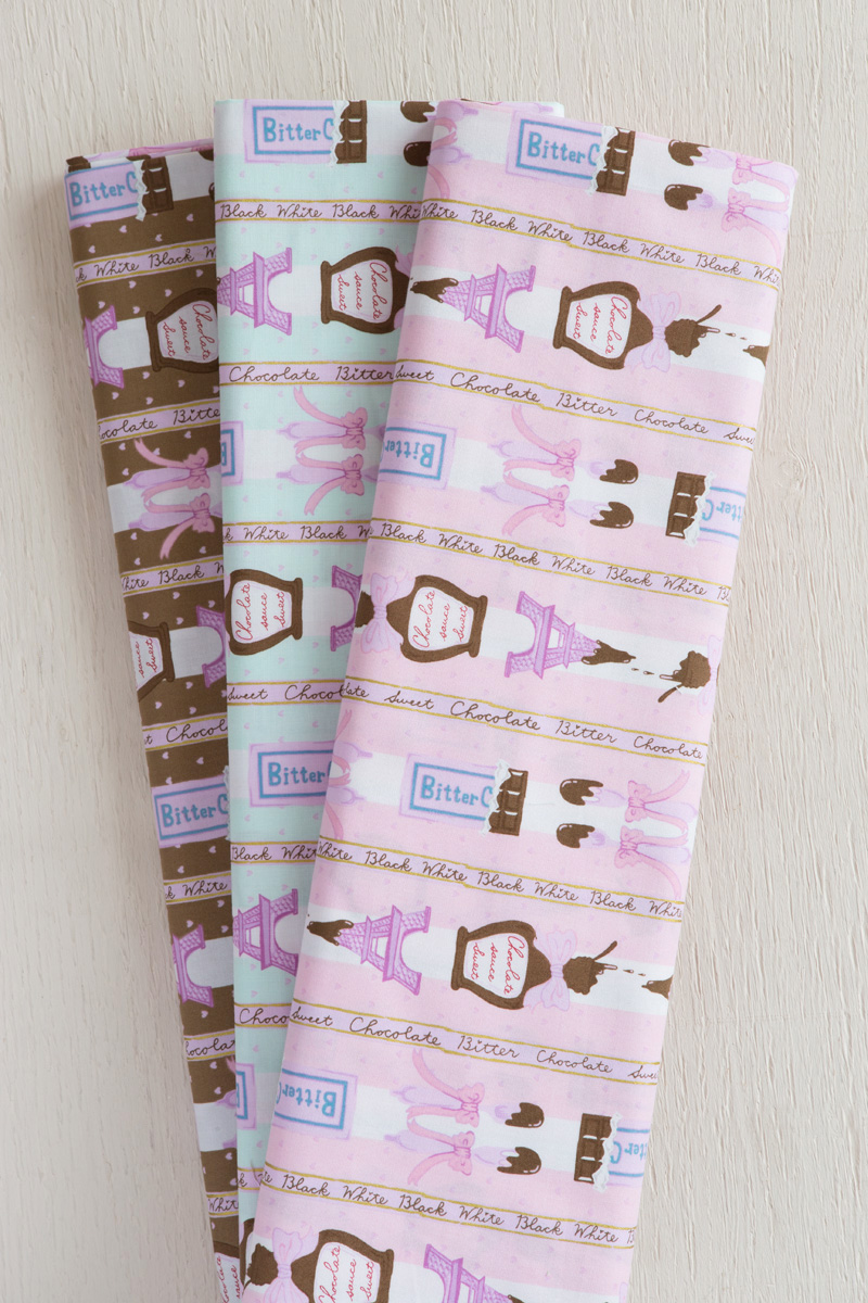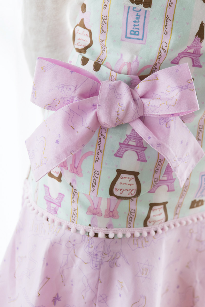 The Eiffel Tower is covered with chocolate syrup. The design is sweet yet elegant and romantic. It is a versatile fabric, perfect for casual projects such as a tote bag or a dress. It is also great for elaborate design items including Lolita style dresses or ribbon embellished headbands.