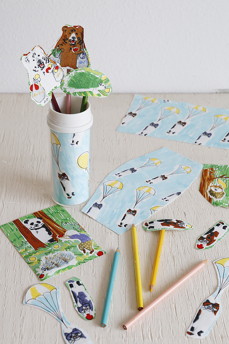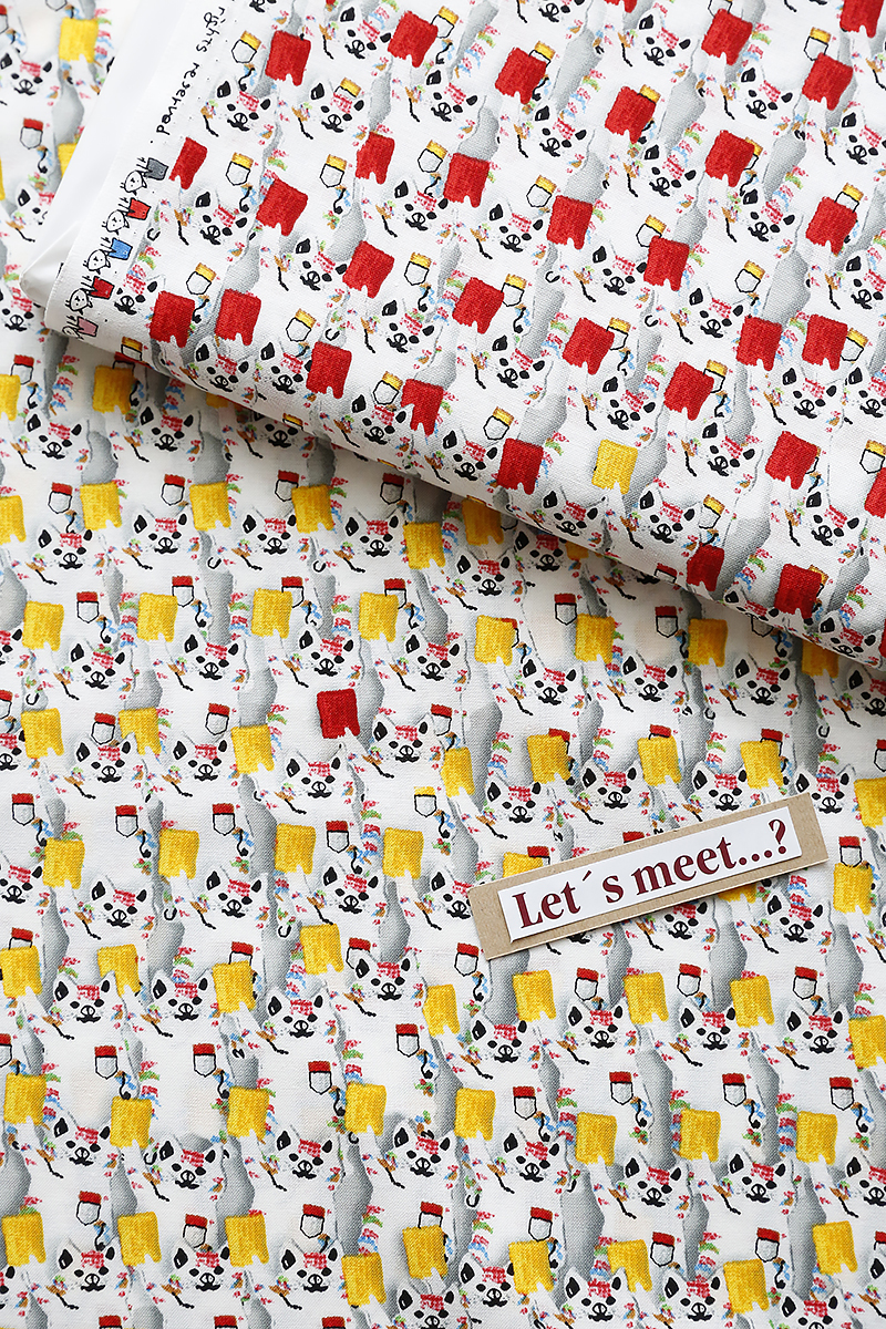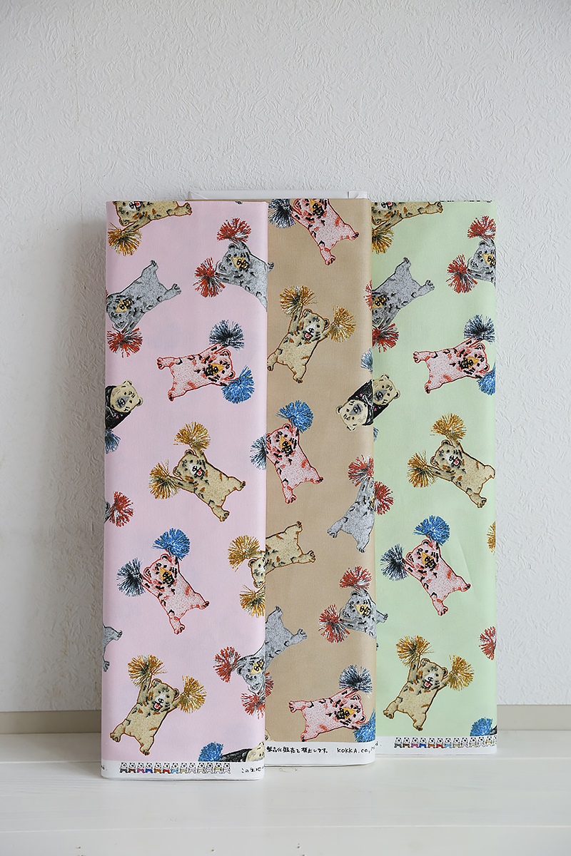 pokefasu are extremely popular with products such as embroidered broaches and stuffed animals full of characters’ unique expressions and gestures. This fabric collaboration explodes with pokefasu world, a product of Chiba’s wild imaginations! “With this fabric, I want people to be playful when sewing – using the hidden character in a conspicuous location or use it in a hidden place like inside the small case. This way it will make you feel more attached to your handmade creations. Or you could be totally spontaneous and just be fun. Just cut the fabric and see what you can do. The edges are designed with cheerful elements. So be creative and make something with it. Just like a monkfish, a fish that has nothing to waste, I want everyone to cook with the pokefasu fabric. I am just joking, but this is definitely the fabric for everyone’s fun sewing moments.”