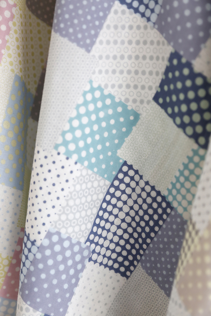 This polka dot patchwork fabric with a slight retro-feel would look great as a tunic. Depending on the color, it has a different look. How about pink for kid’s dress or making a tunic for moms in calmer colors? Why not enjoy making clothing that can be enjoyed by both moms and kids?