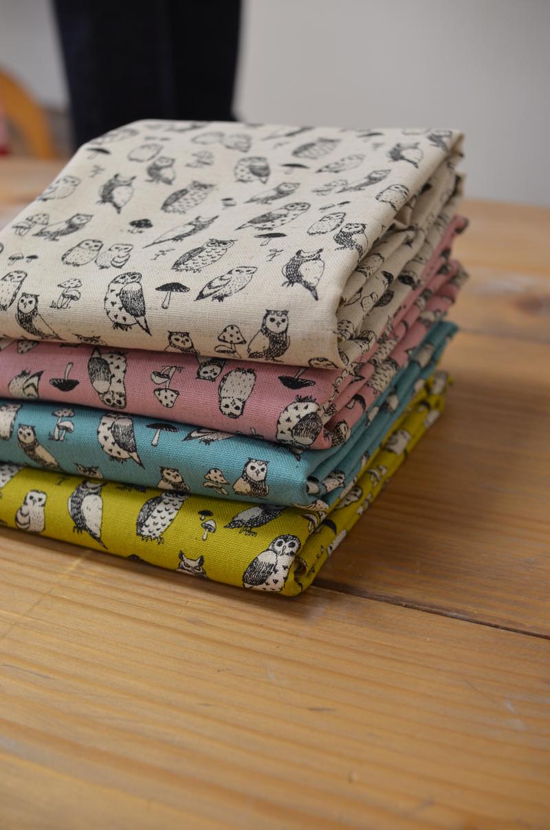An owl, a bird that is said to bring happiness, is a very popular Kokka fabric motif. A solid feel cotton linen canvas is suitable for making everyday items such as small cases or lunch box (bento) carriers.