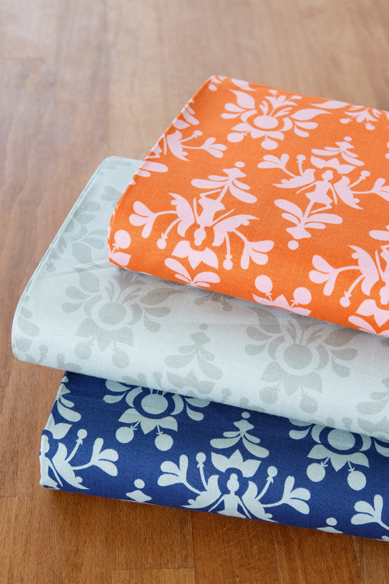 “I kept picturing parents making bags for their daughter to take to her dance class, a grandmother creating a little quilt for her grand-daughter who loves to dance, and I pictured people like me, who aren’t dancers, but like the simple and sweet design. Cute is cute, and people who like cute things might be a fan.” The small floral, dotted stripe or damask print is great for any project. They will be the accent fabrics as well.