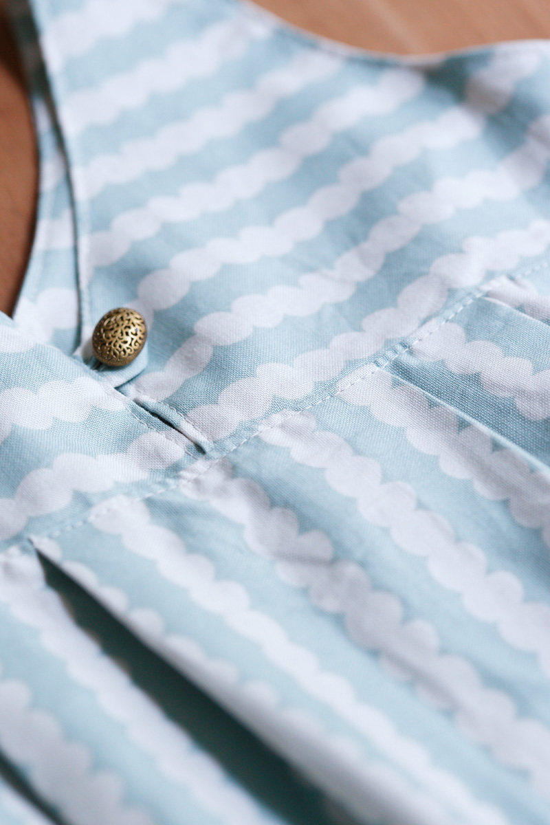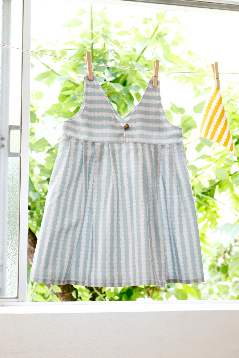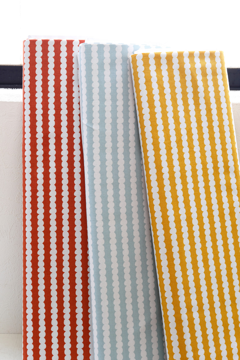 It is the combination of stripe and classic polka dot that is Wood’s favorite. Since the beaded pattern can become not only vertical but also horizontal border, you can enjoy various ways to use this fabric.