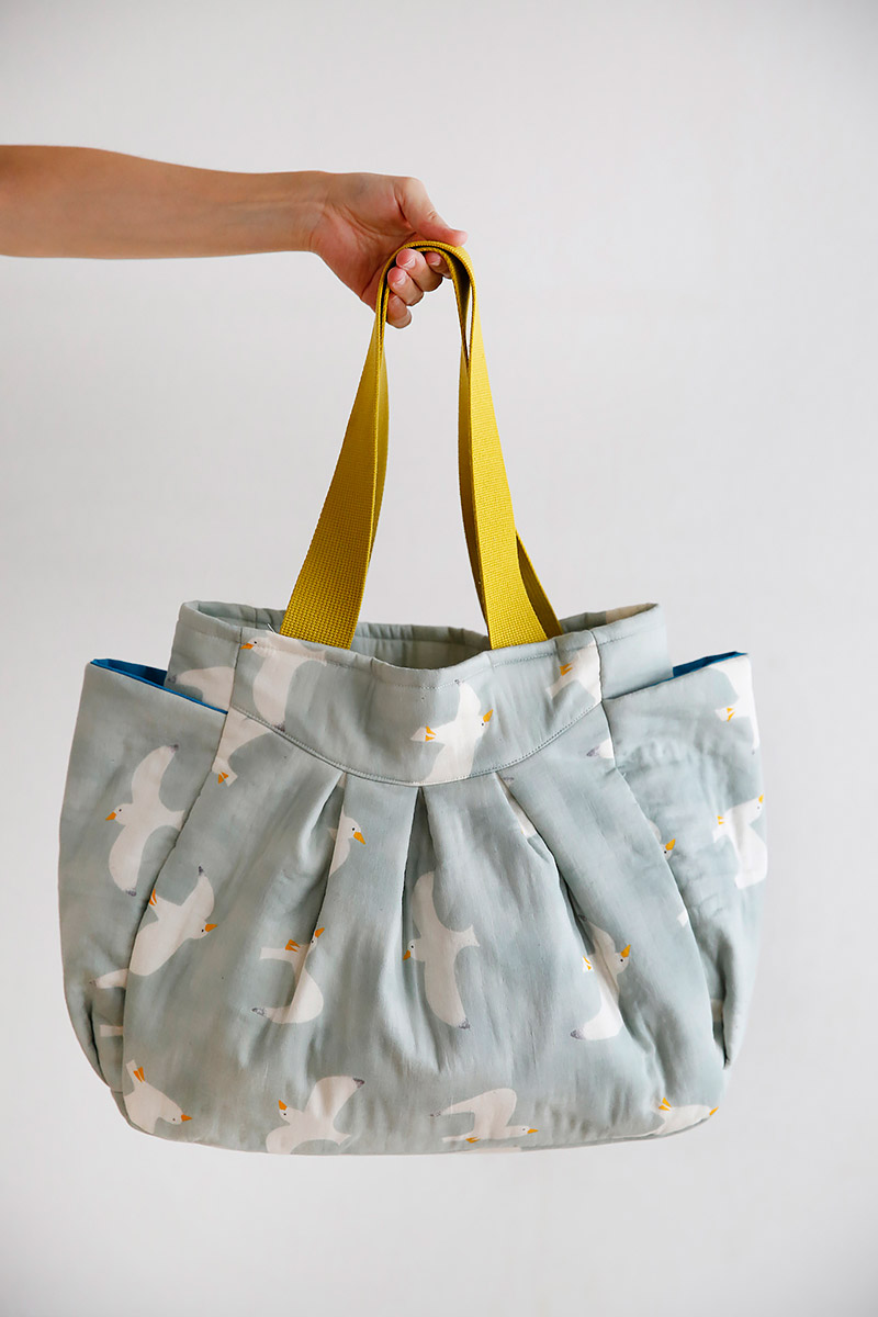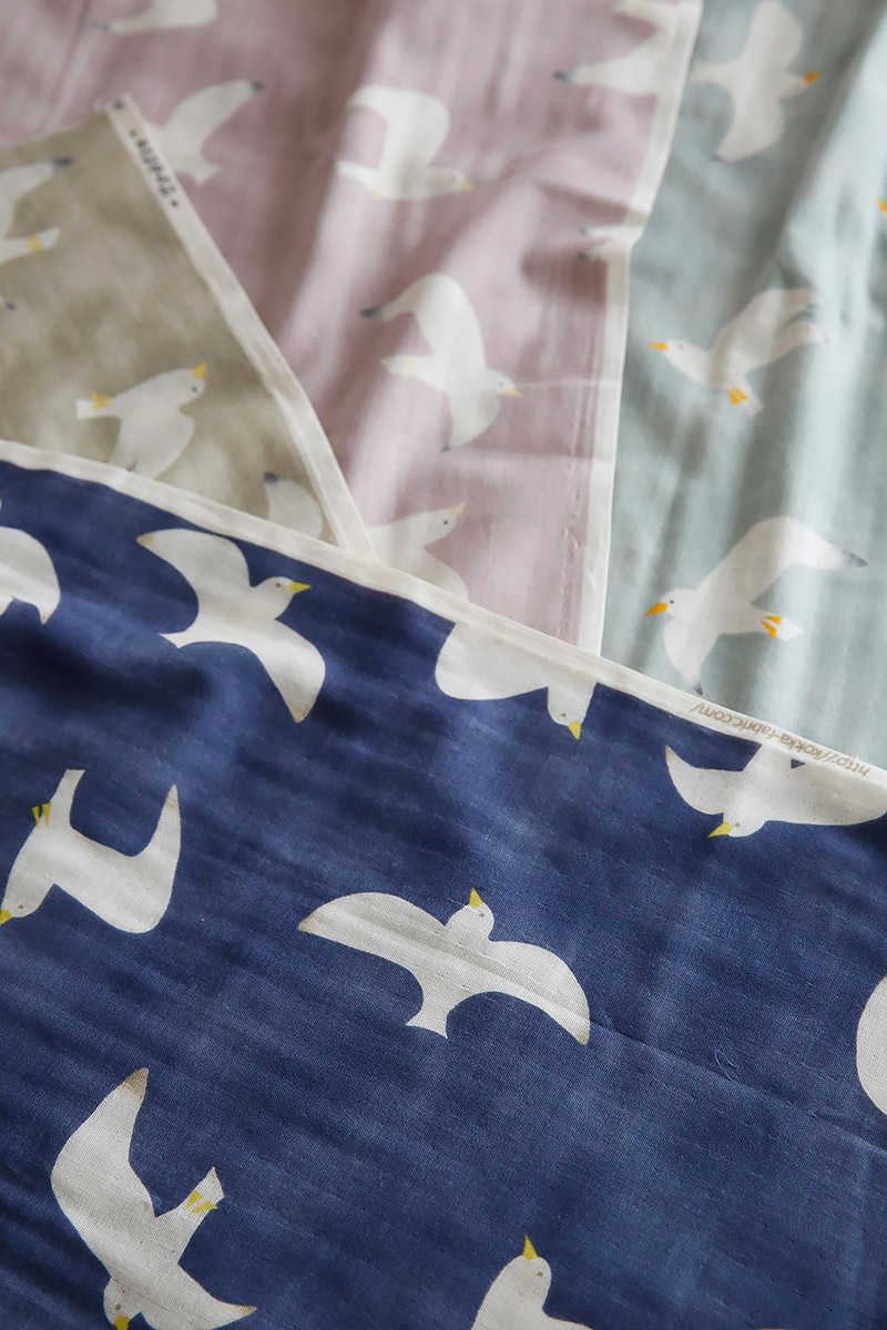 In Gull, a large motif of seagulls catches one’s attention. The background is enhanced with an uneven-looking dye. This fabric will be great for making a fluffy shaped bag.