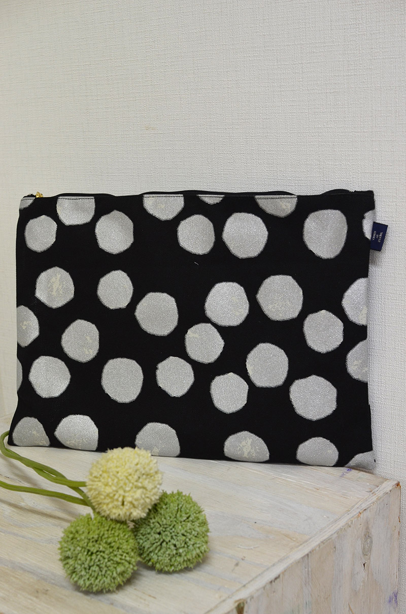 A popular motif for Zakka (knickknack items), a rain drop design is featured. This fabric is perfect for making a currently popular item, a clutch bag. The bag will come in handy for a quick outing.