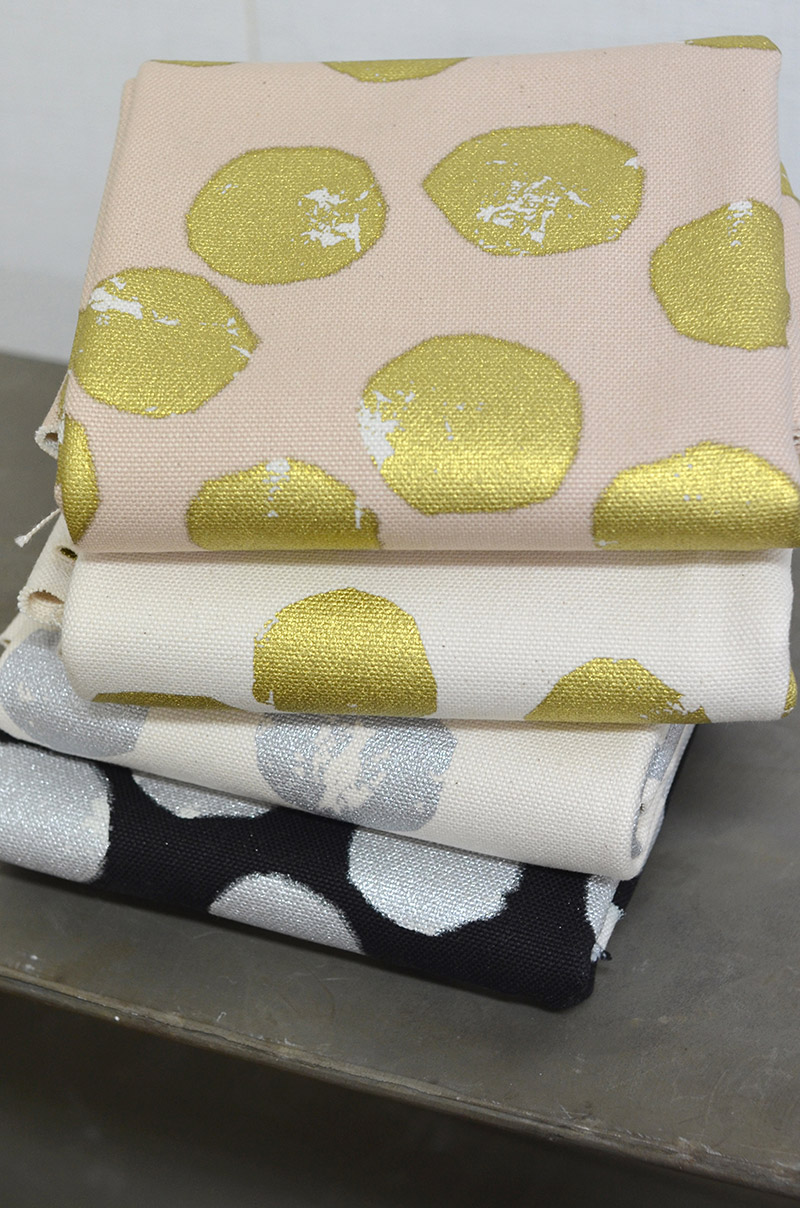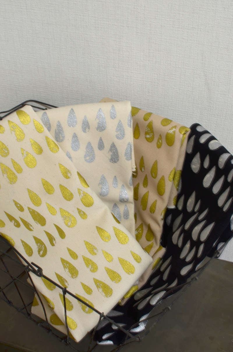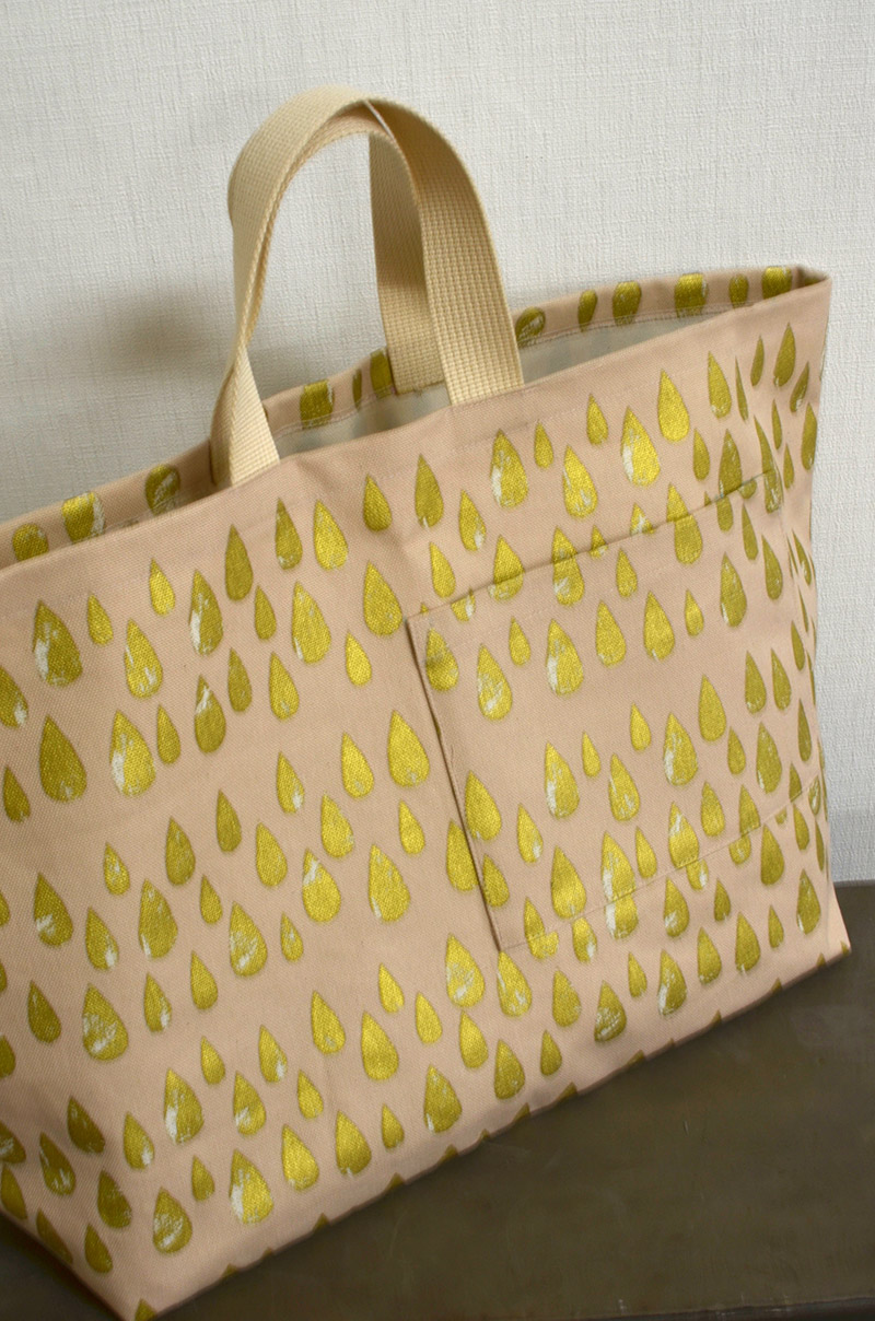 Slightly patchy looking dots in irregular patterns stand out in Dot. This fabric, printed with gold powder, is different from other dot prints. It will definitely spice up the look of an ordinary tote bag.